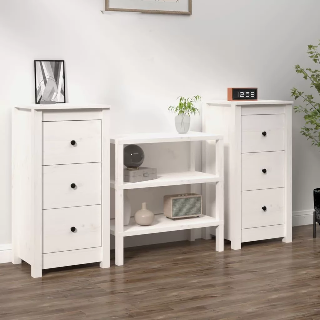 2 db fehér tömör fenyőfa tálalószekrény 40 x 35 x 80 cm