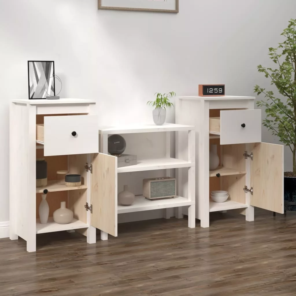 2 db fehér tömör fenyőfa tálalószekrény 40 x 35 x 80 cm