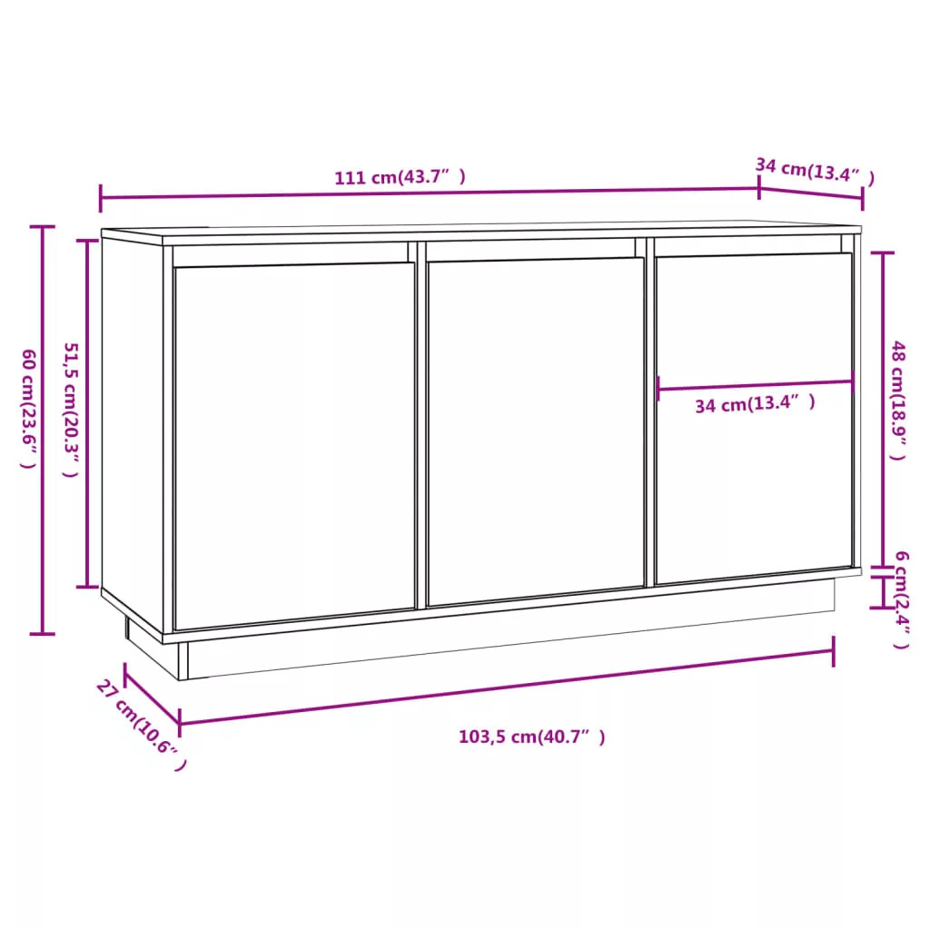 tömör fenyőfa tálalószekrény 111 x 34 x 60 cm