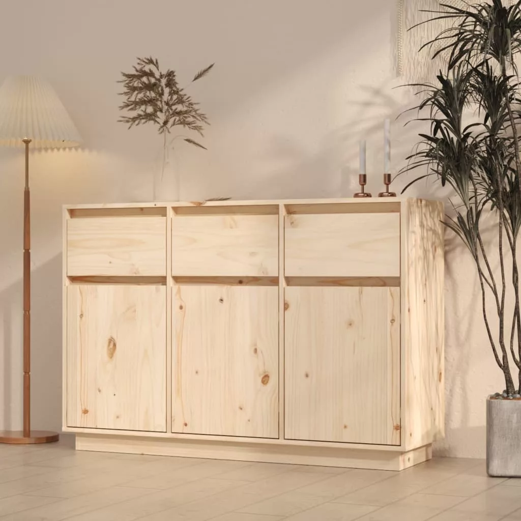 Ez a lebegő stílusú tálalószekrény számos igényét kielégíti, és a helyiség ideális kiegészítője lesz. Prémium minőségű anyag: A tömör fenyőfa egy gyönyörű természetes anyag. Kezelje a felületet olajjal, viasszal, lakkal vagy mázzal az erősebb felület kialakítása és az egyszerű tisztítás érdekében. A fenyőfa erezete egyenes, a csomók adják az anyag jellegzetes, rusztikus megjelenését.Stabil szerkezet: A tálalószekrény a felépítésének köszönhetően stabil, tartós és hosszú élettartamú.Tárolófunkció: A 3 fióknak és a 6 rekesznek köszönhetően ez a tálalószekrény bőséges tárolóhelyet biztosít magazinjai, könyvei, DVD-i és multimédiás eszközei kézközelben történő rendezett tárolásához. Figyelem:A dőlés megakadályozása érdekében a terméket a mellékelt tartóelem segítségével rögzíteni kell a falhoz.