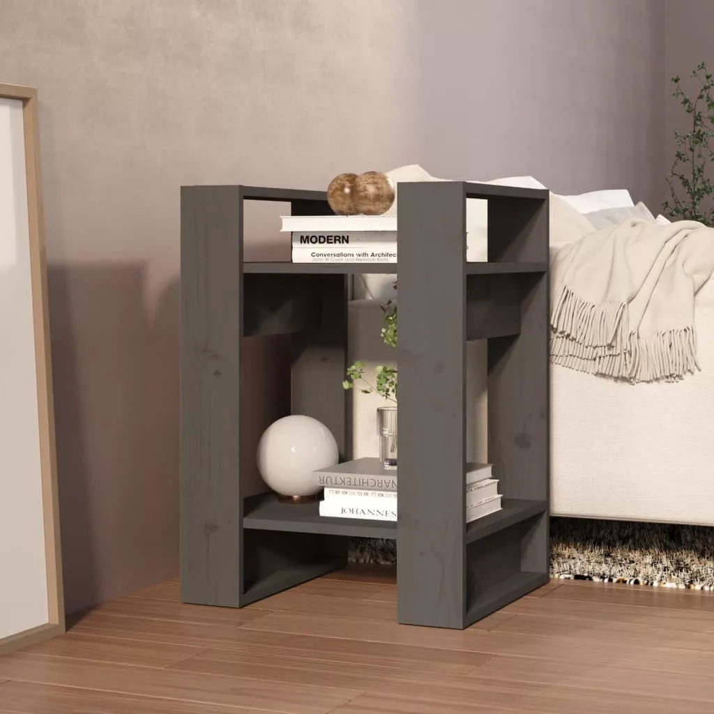 szürke tömör fenyőfa könyvszekrény/térelválasztó 41x35x57 cm