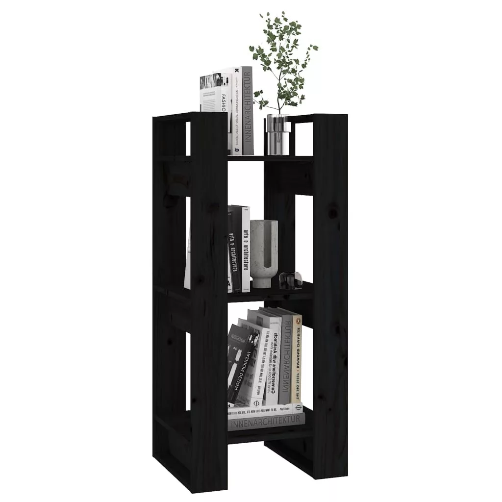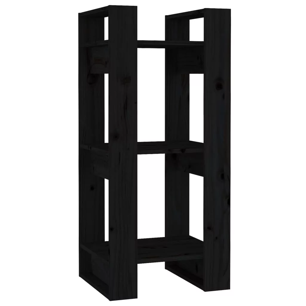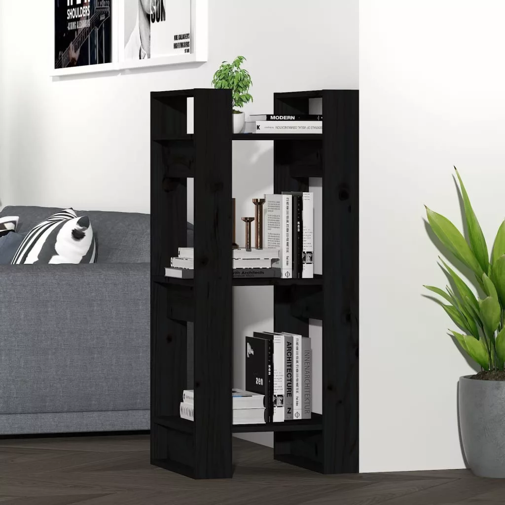 fekete tömör fenyőfa könyvszekrény/térelválasztó 41x35x91 cm