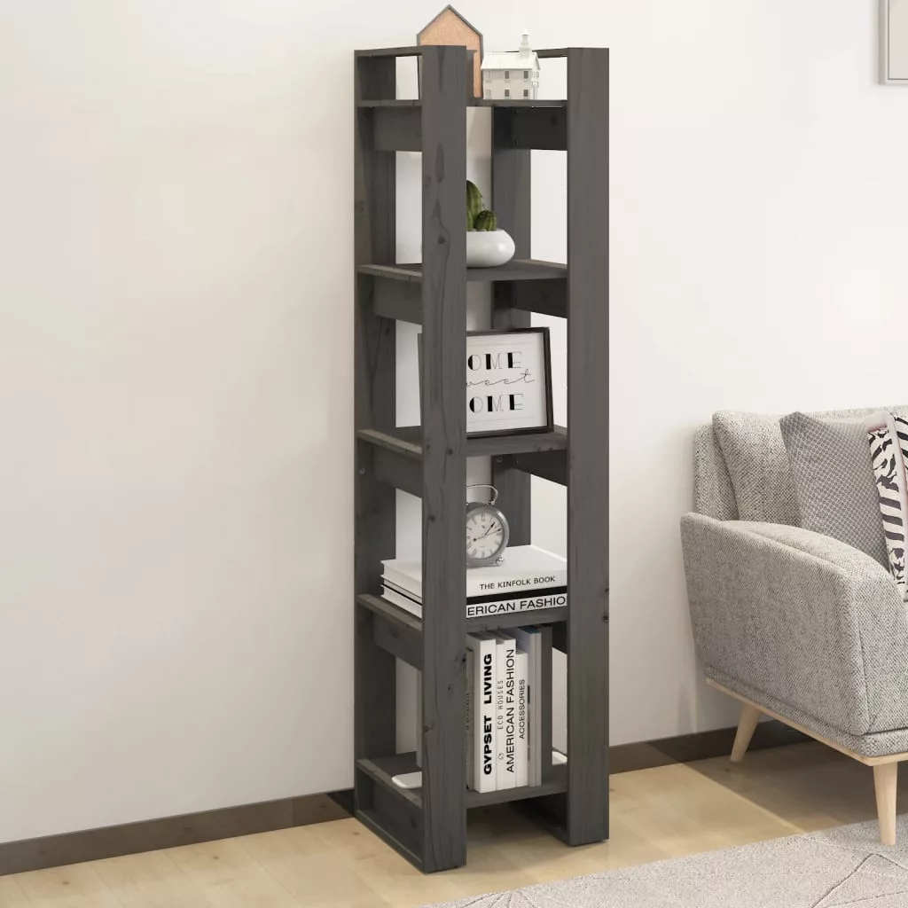 szürke tömör fenyőfa könyvszekrény/térelválasztó 41x35x160 cm