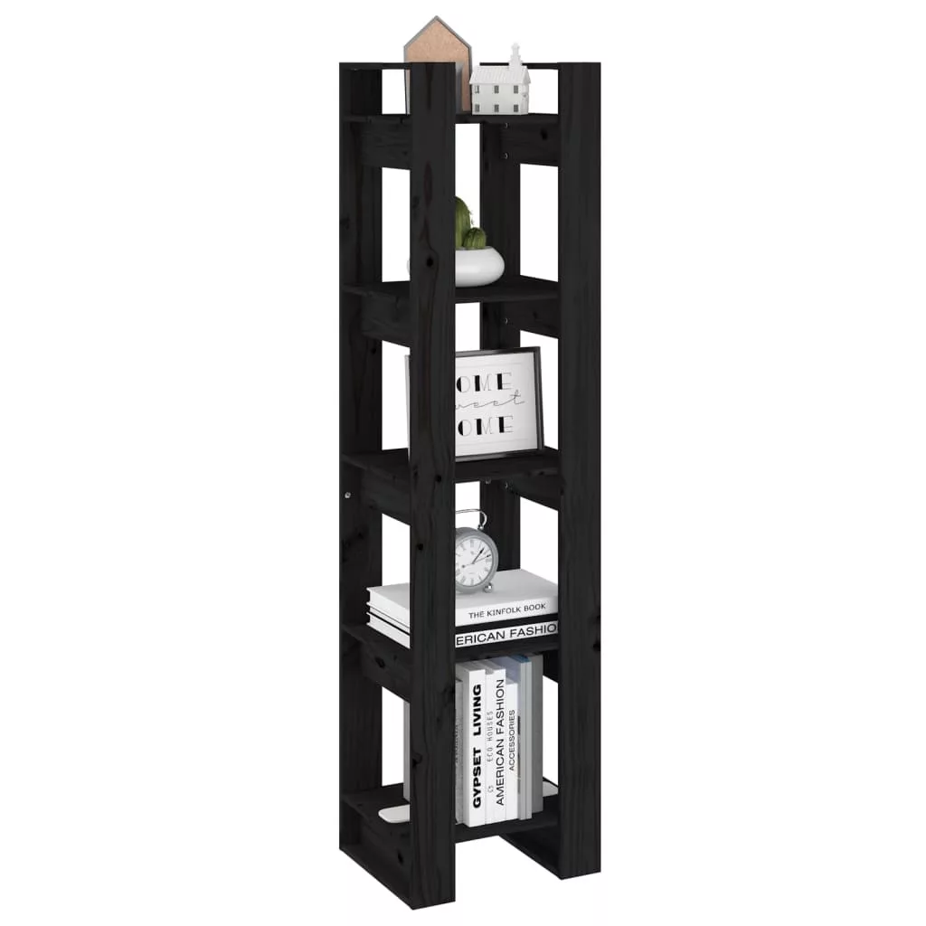 fekete tömör fenyőfa könyvszekrény/térelválasztó 41x35x160 cm