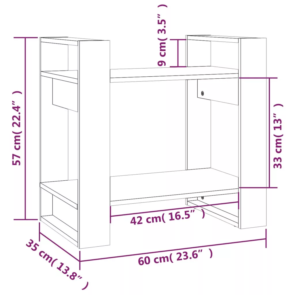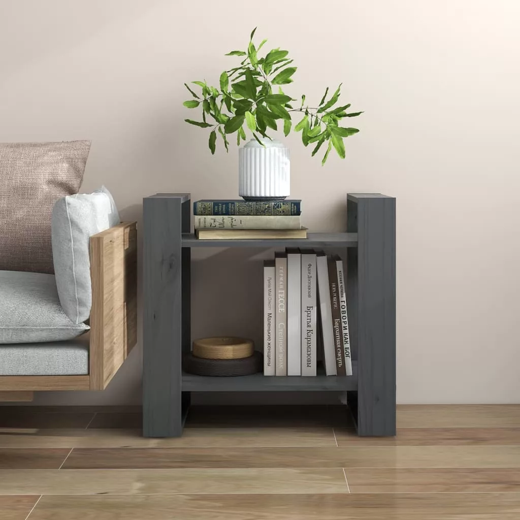 szürke tömör fenyőfa könyvszekrény/térelválasztó 60x35x57 cm