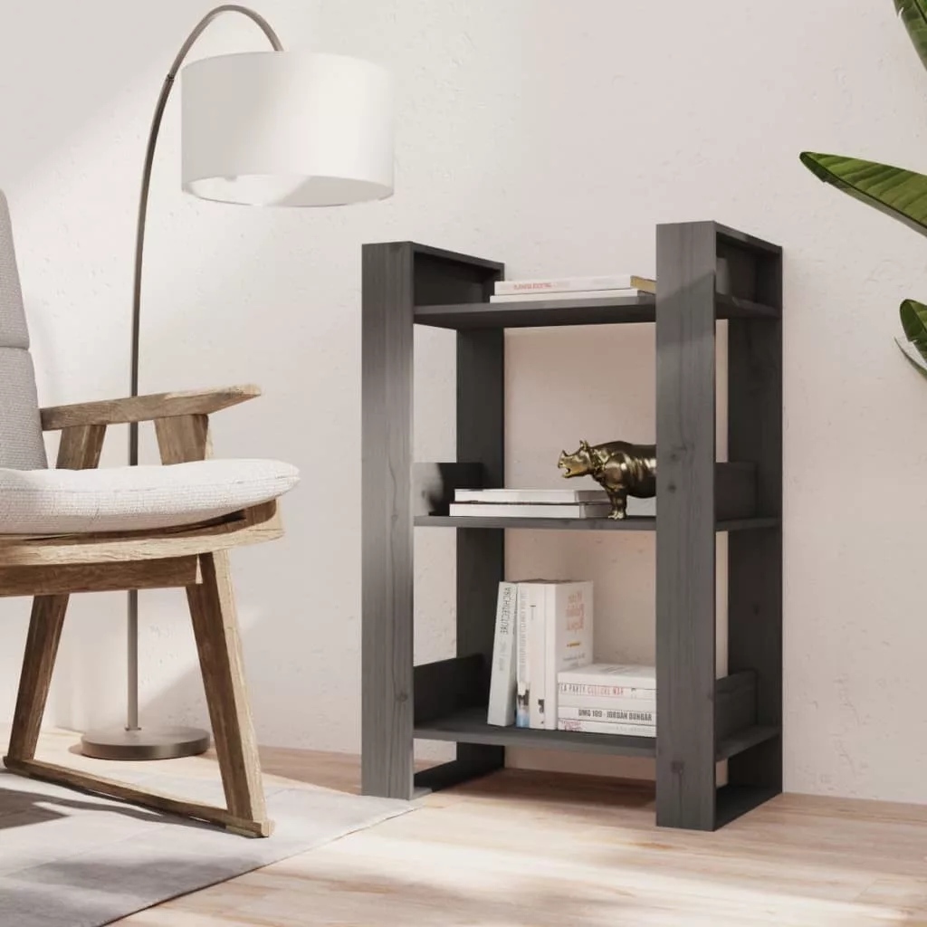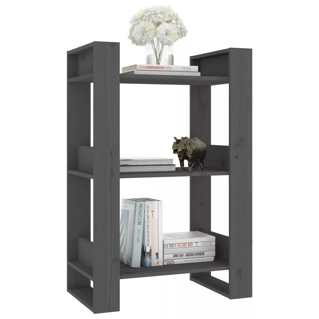 szürke tömör fenyőfa könyvszekrény/térelválasztó 60x35x91 cm