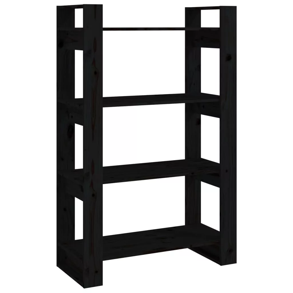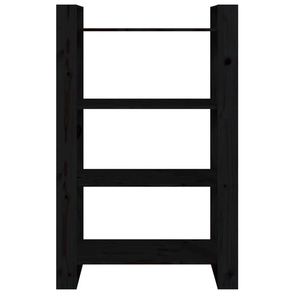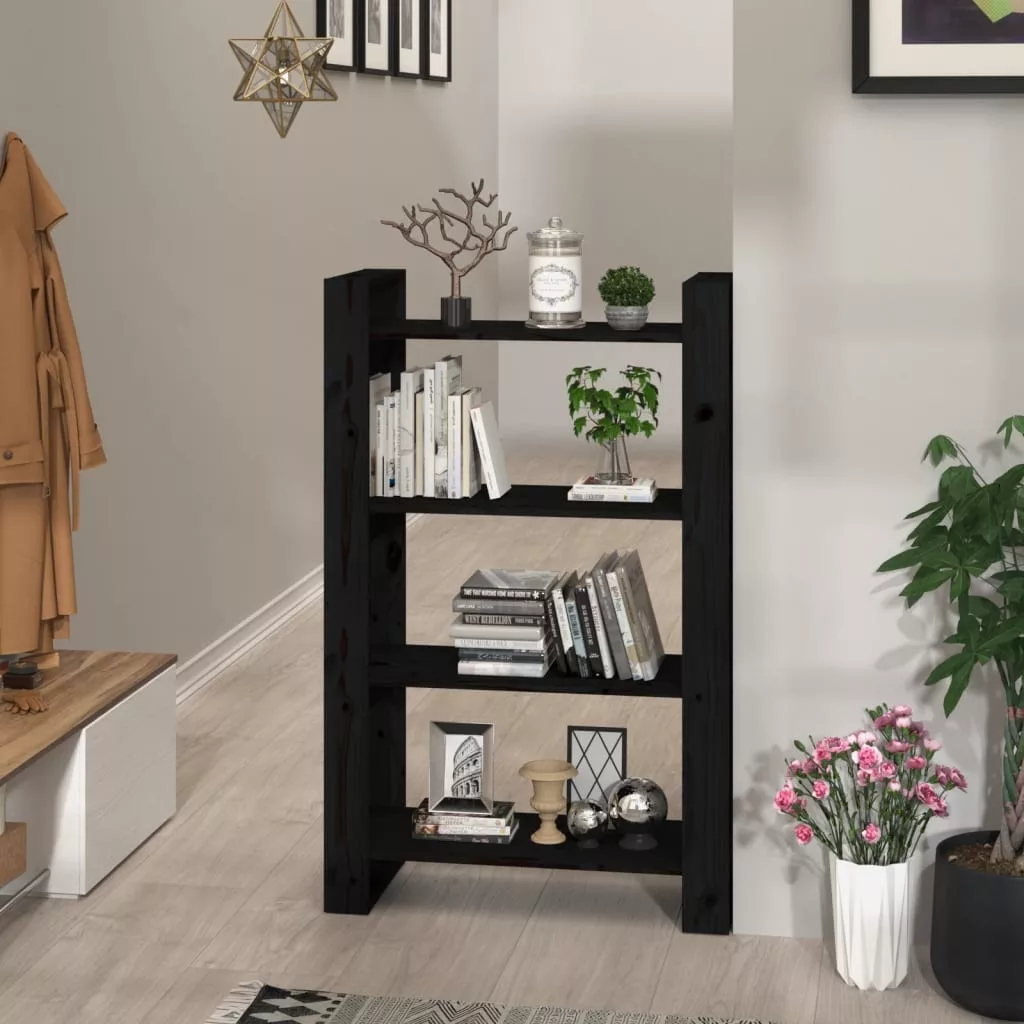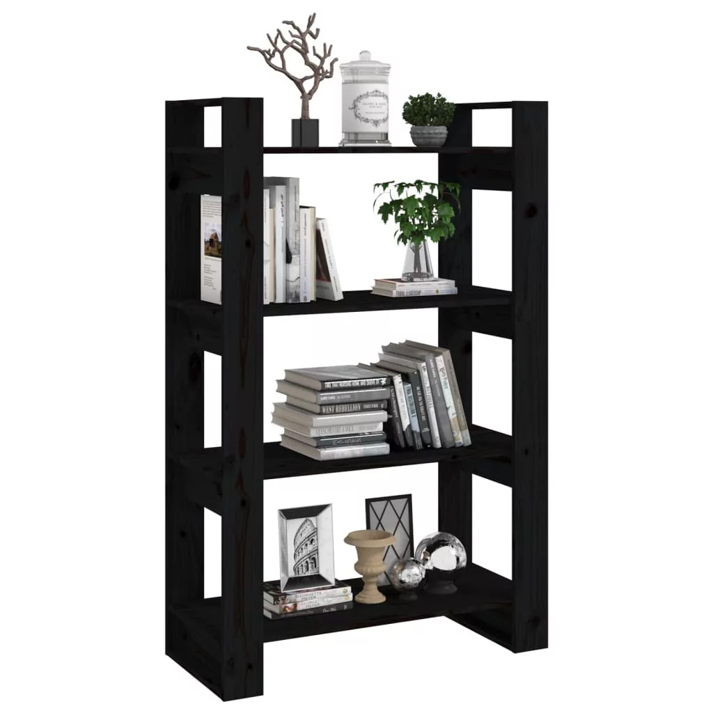 fekete tömör fenyőfa könyvszekrény/térelválasztó 80x35x125 cm