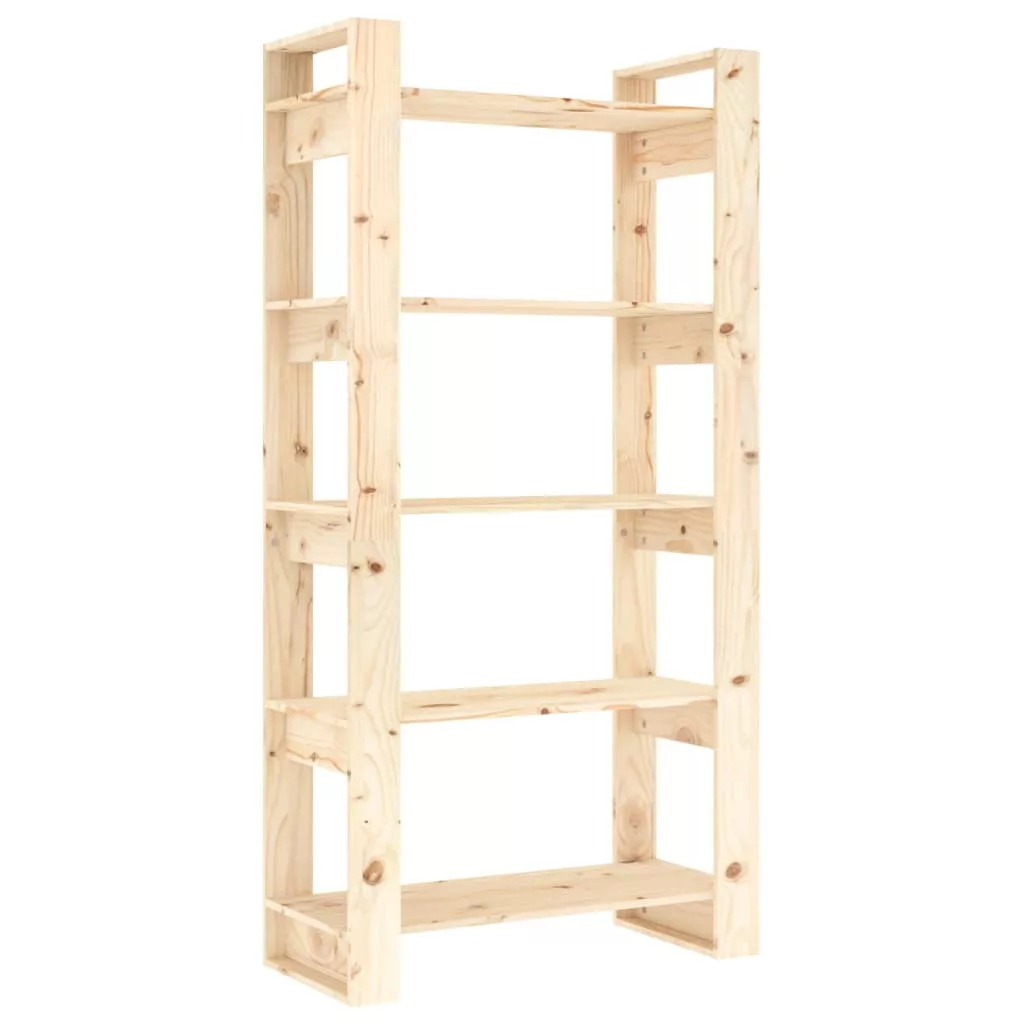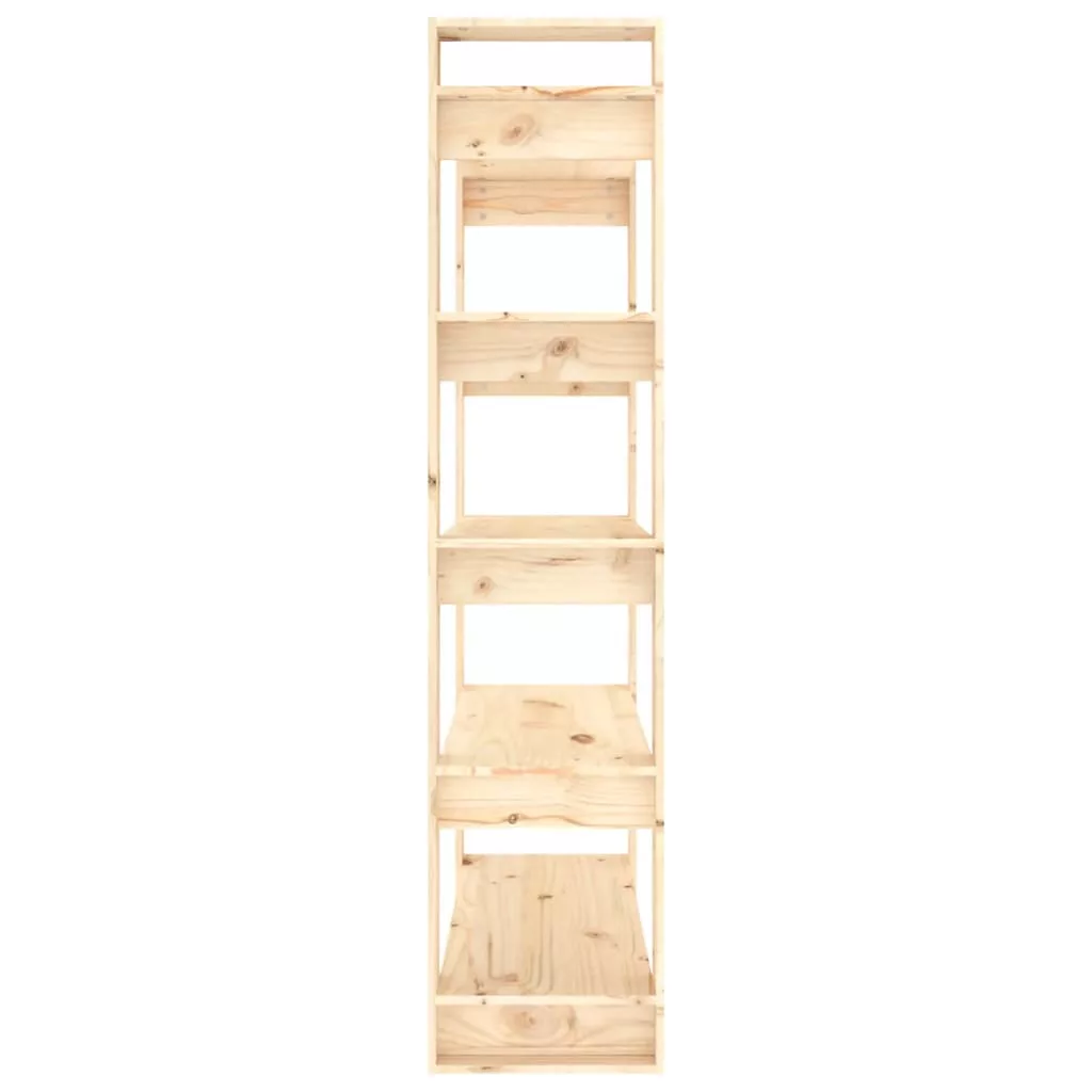 Ez a sokoldalú könyvszekrény dekoratív és praktikus kiegészítője lesz a lakásának. Térelválasztóként is használható. Prémium anyag: A tömör fenyőfa egy gyönyörű természetes anyag. Kezelje a felületet olajjal, viasszal, lakkal vagy mázzal az erősebb felület kialakítása és az egyszerű tisztítás érdekében. A fenyőfa erezete egyenes, a csomók adják az anyag jellegzetes, rusztikus megjelenését.Bőséges tárolóhely: A könyvespolc bőséges helyet biztosít magazinjai, könyvei, DVD-i, multimédiás eszközei és egyéb dísztárgyai kézközelben történő rendezett tárolásához.Többfunkciós: A fából készült szekrény térelválasztóként is használható, így tökéletes választás előszobájába vagy bármely más helyiségbe. Figyelem:A dőlés megakadályozása érdekében a terméket a mellékelt tartóelem segítségével rögzíteni kell a falhoz.