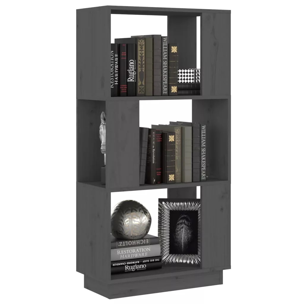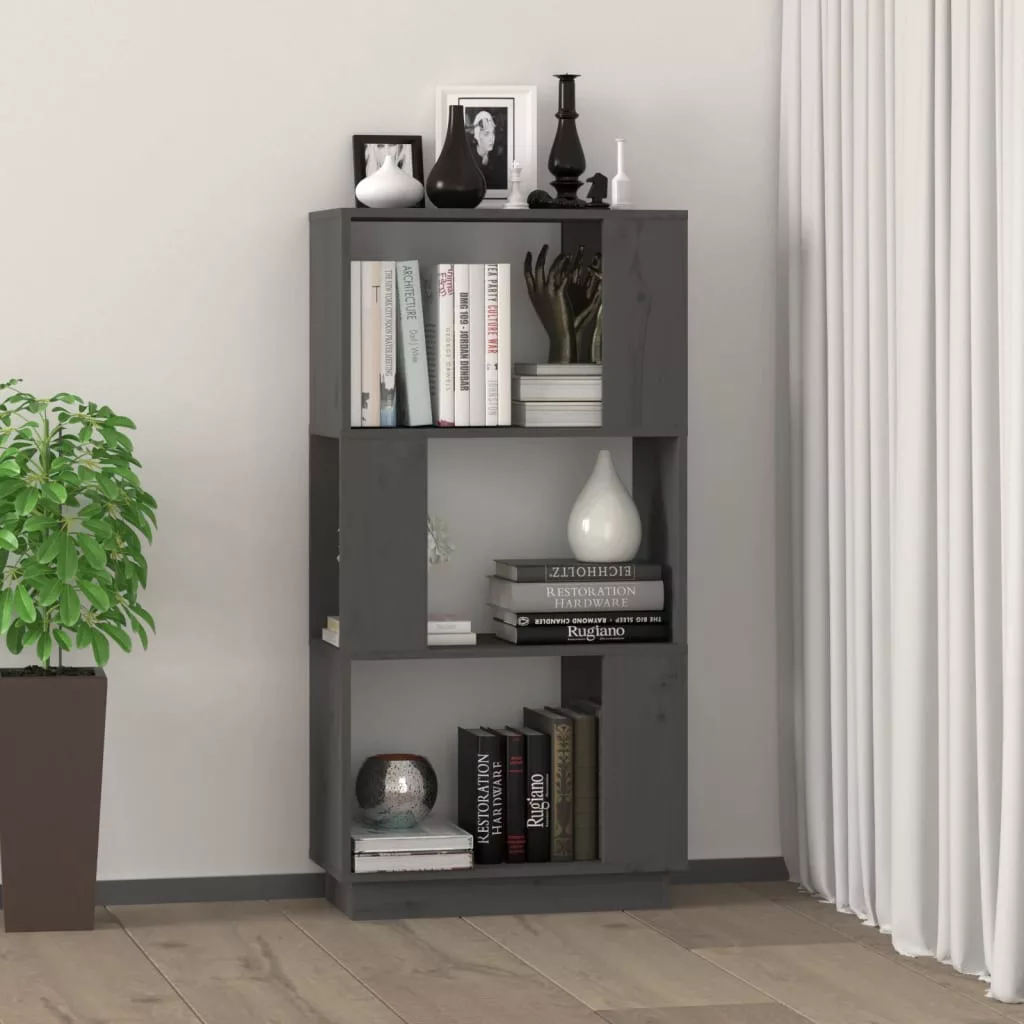 szürke tömör fenyőfa könyvszekrény/térelválasztó 51x25x101 cm