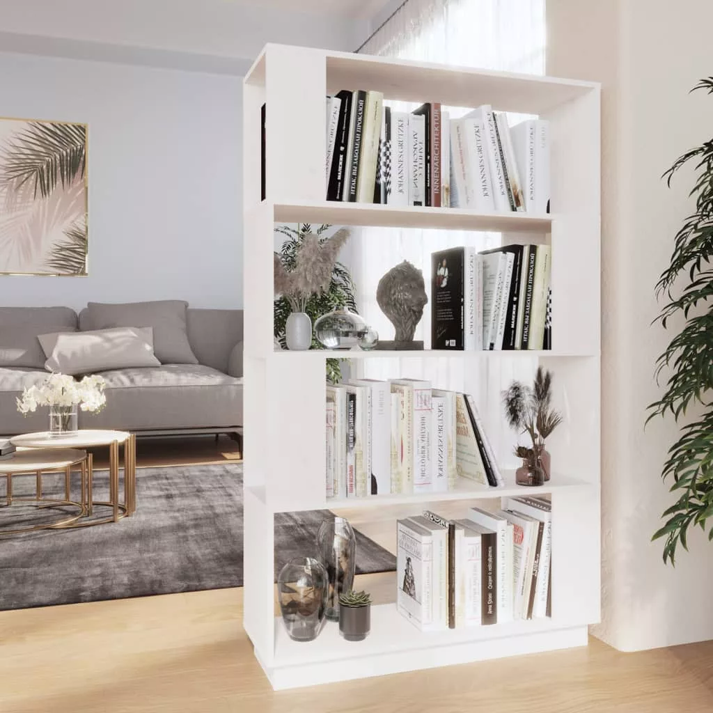 fehér tömör fenyőfa könyvszekrény/térelválasztó 80x25x132 cm
