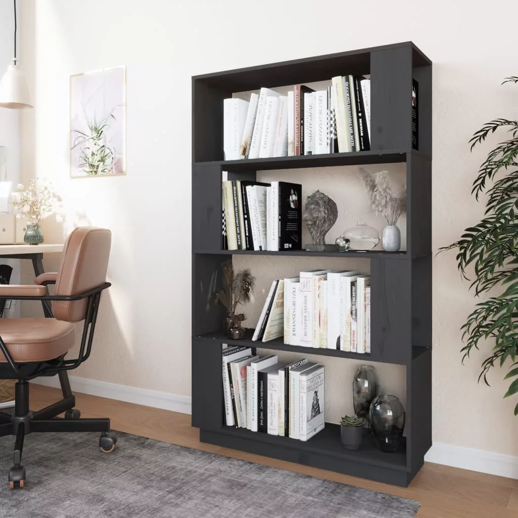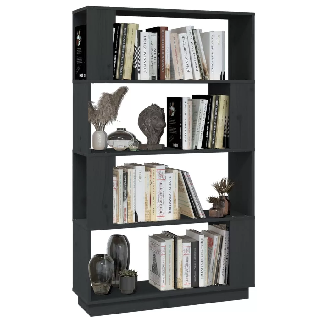 szürke tömör fenyőfa könyvszekrény/térelválasztó 80x25x132 cm