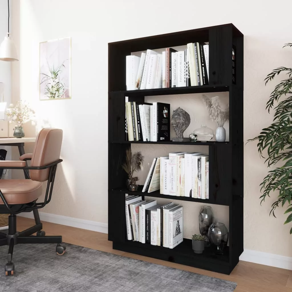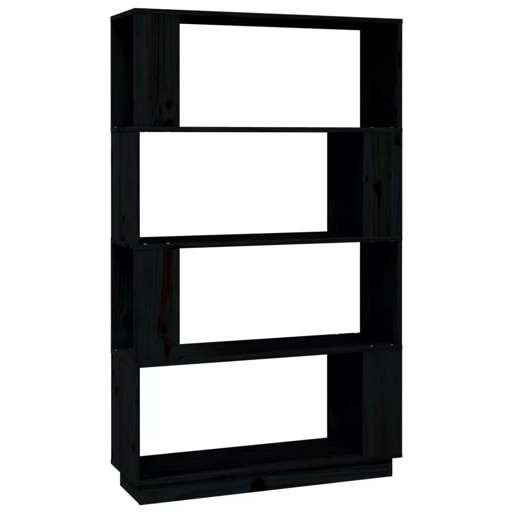 fekete tömör fenyőfa könyvszekrény/térelválasztó 80x25x132 cm