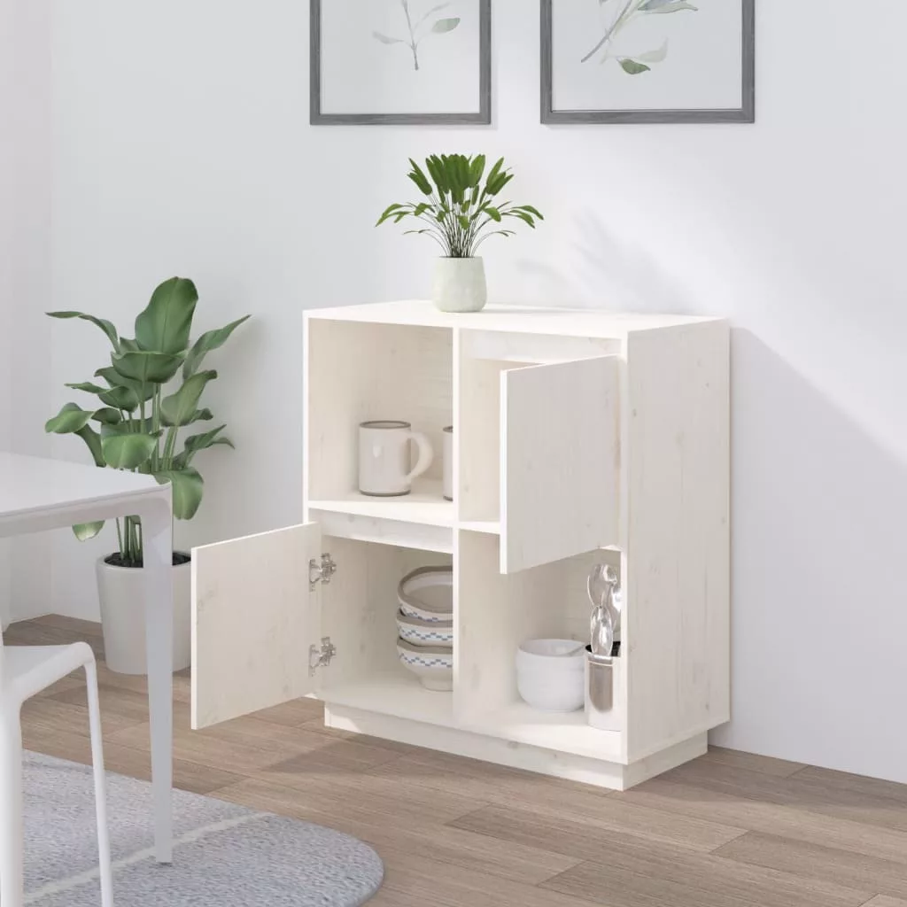 fehér tömör fenyőfa tálalószekrény 74x35x80 cm