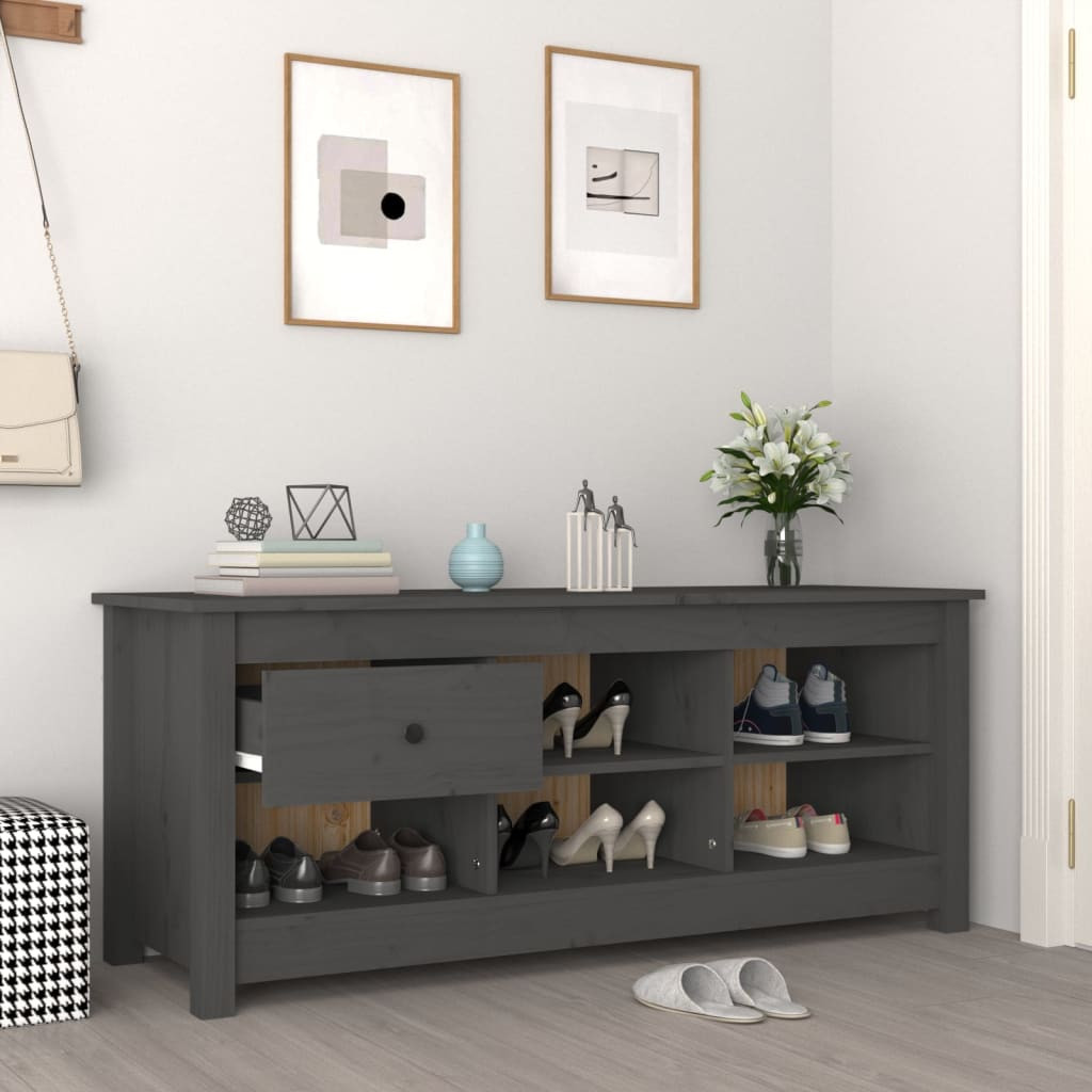 szürke tömör fenyőfa cipősszekrény 110 x 38 x 45,5 cm