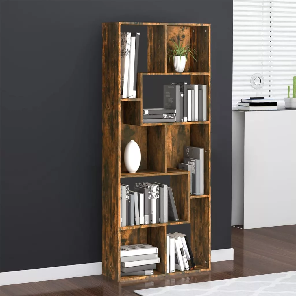 füstös tölgy színű szerelt fa könyvszekrény 67 x 24 x 161 cm