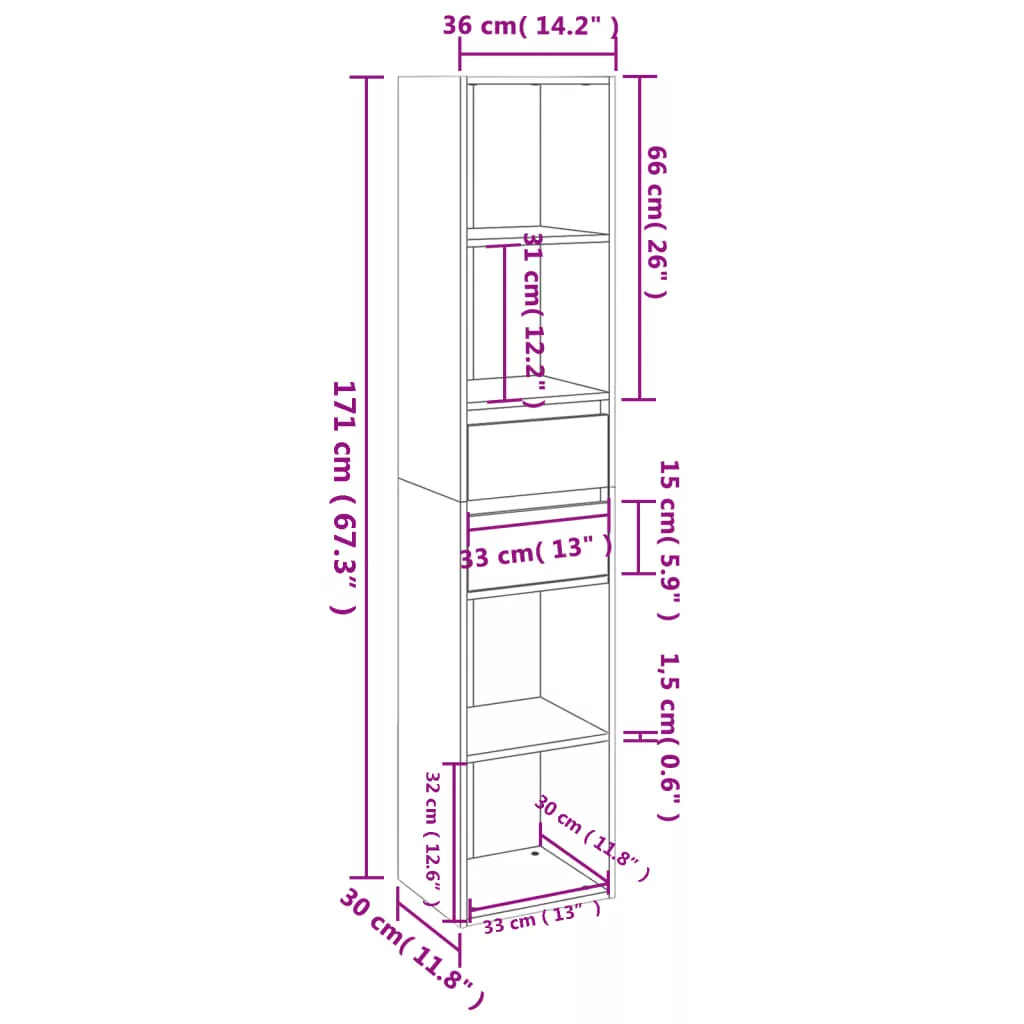 • Mérete: 36 x 30 x 171 cm (Szé x Mé x Ma)