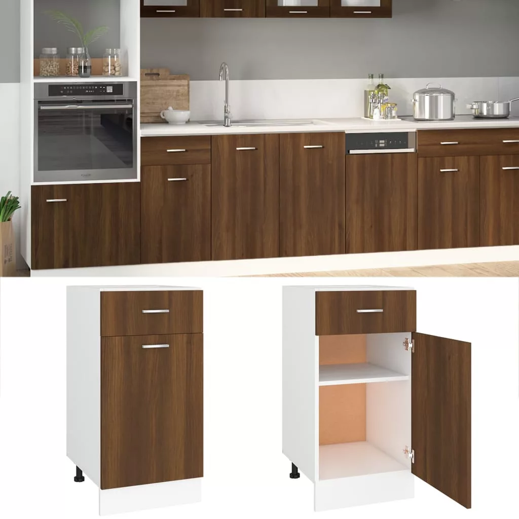 Ez a fiókos alsószekrény úgy optimalizálja konyhája terét, hogy bőséges tárolóhelyet biztosít személyes tárgyainak! Tartós anyag: A szerelt fa kivételes minőségű, sima felületű, szilárd, stabil, és ellenáll a nedvességnek. A szerelt fából készült konyhaszekrény könnyen tisztítható.Bőséges tárolóhely: A szekrény 1 fiókkal és 2 rekesszel rendelkezik, melyek elegendő helyet kínálnak edények, tányérok, fazekak és egyéb konyhai kellékek számára.Praktikus ajtó: Tartsa rendezetten környezetét azzal, hogy a kisebb tárgyakat a konyhaszekrény ajtajai mögé rejti. Figyelem: A dőlés megakadályozása érdekében a terméket a mellékelt tartóelem segítségével rögzíteni kell a falhoz. Megjegyzés:Az egyszerű összeszerelés érdekében minden termékhez mellékelünk összeszerelési útmutatót. A csomag a munkapultot nem tartalmazza