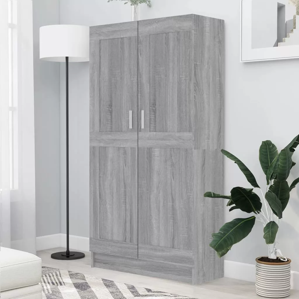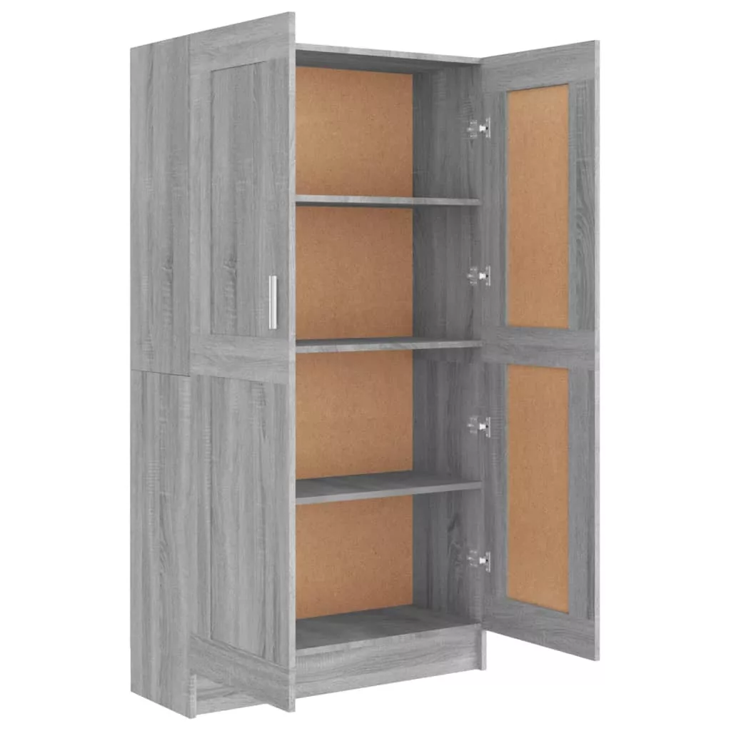 szürke sonoma színű szerelt fa könyvszekrény 82,5x30,5x150 cm