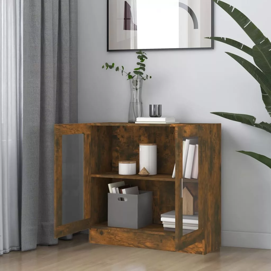 füstös tölgy színű szerelt fa vitrinszekrény 82,5x30,5x80 cm