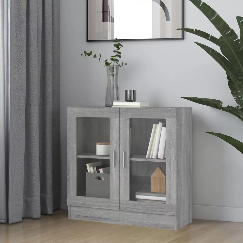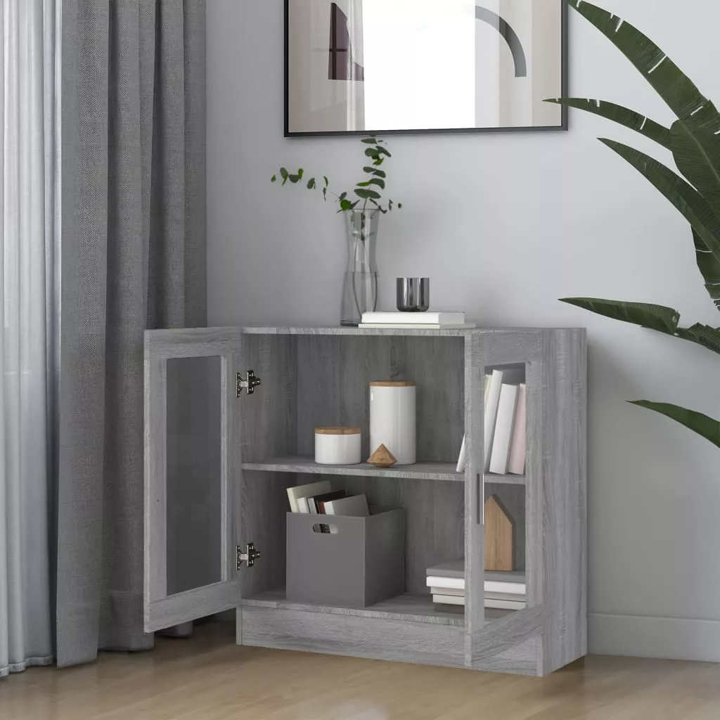 szürke sonoma színű szerelt fa vitrinszekrény 82,5x30,5x80 cm