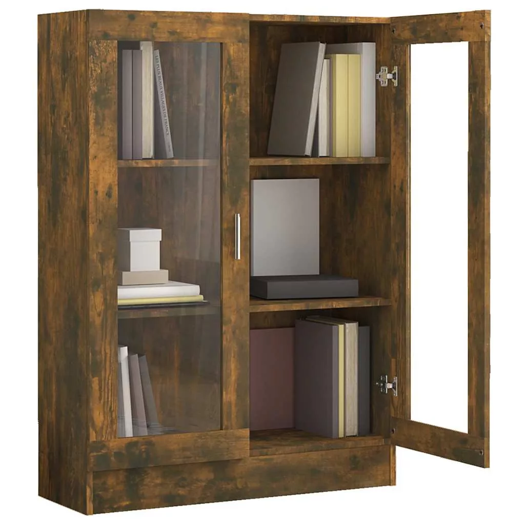 füstös tölgyszínű szerelt fa vitrinszekrény 82,5x30,5x115 cm