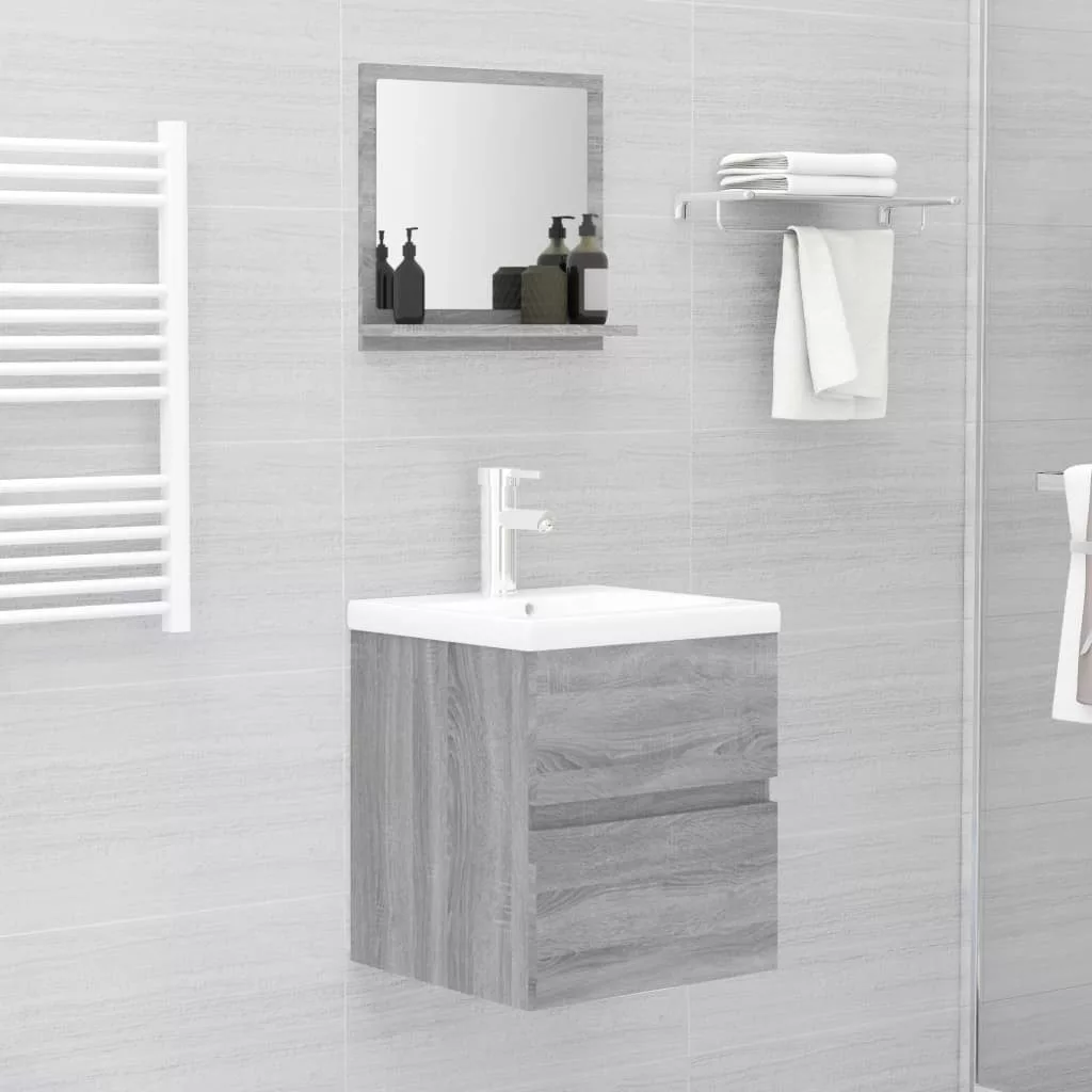 szürke sonoma színű szerelt fa fürdőszobatükör 40x10,5x37 cm