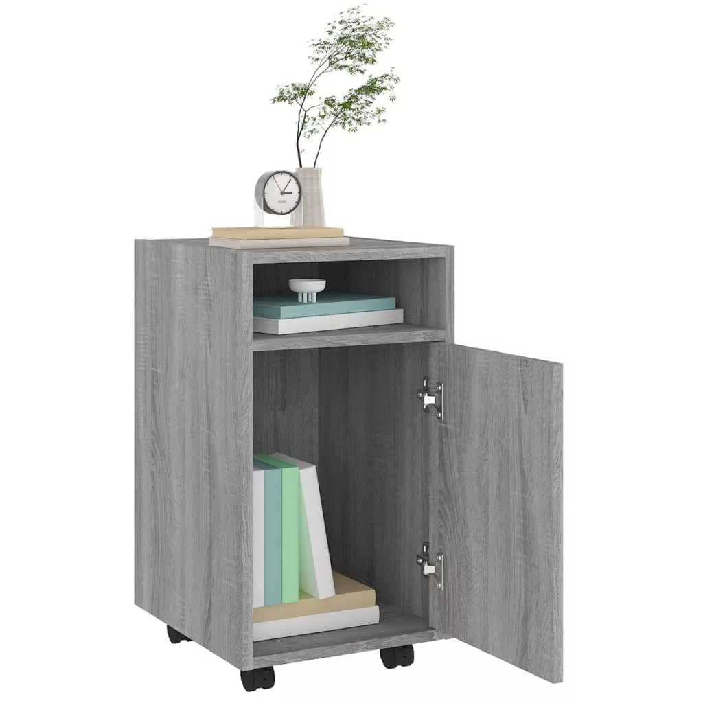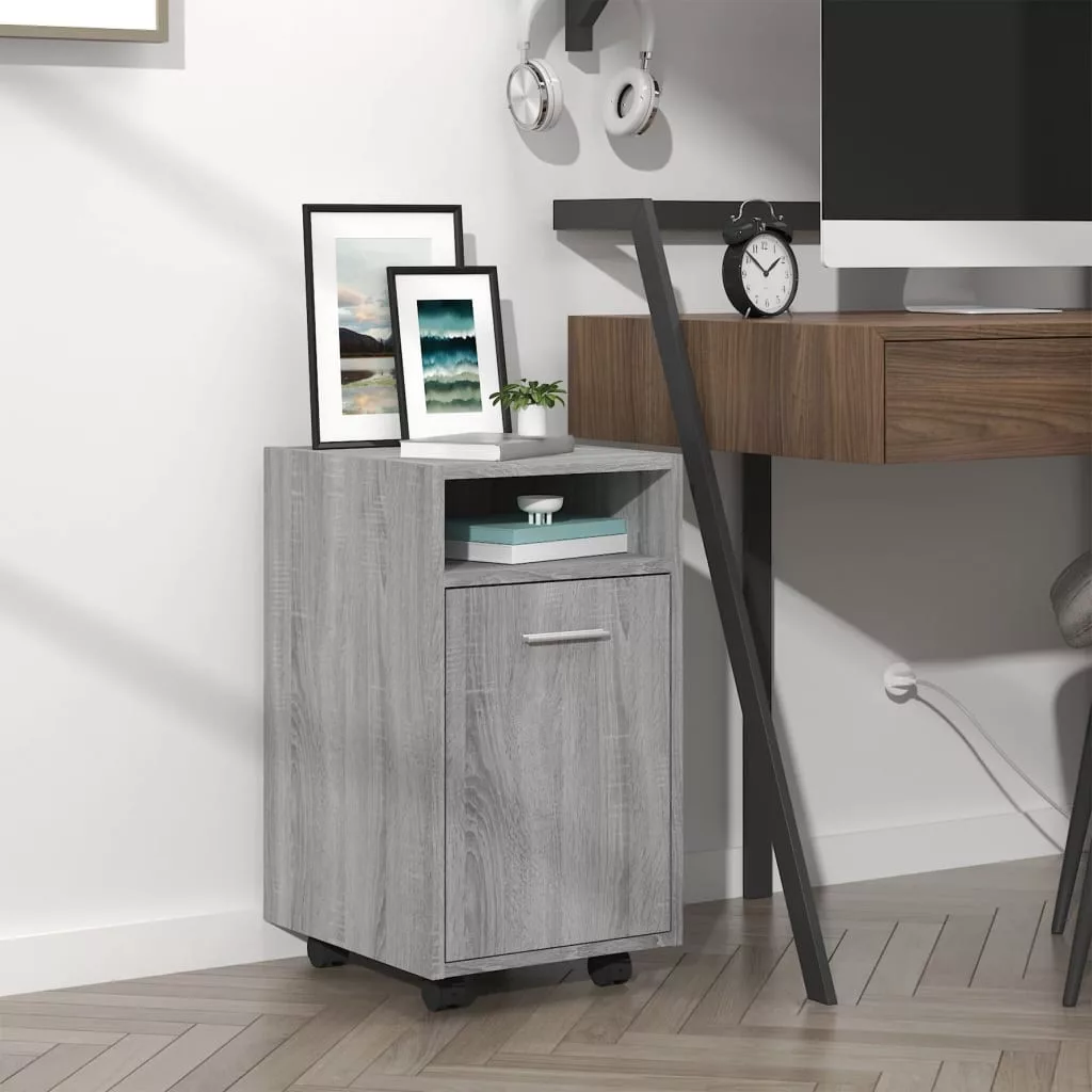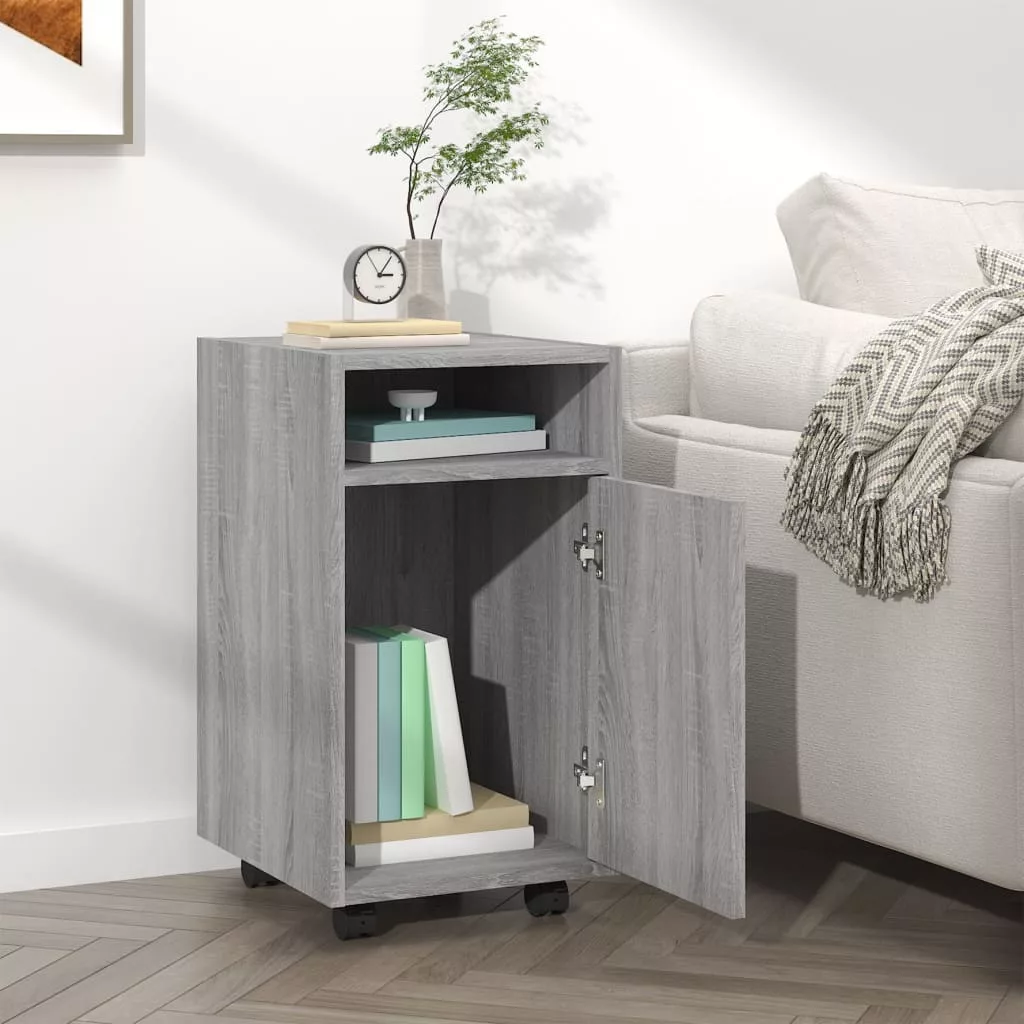 szürke sonoma színű fa kisszekrény kerekekkel 33 x 38 x 60 cm