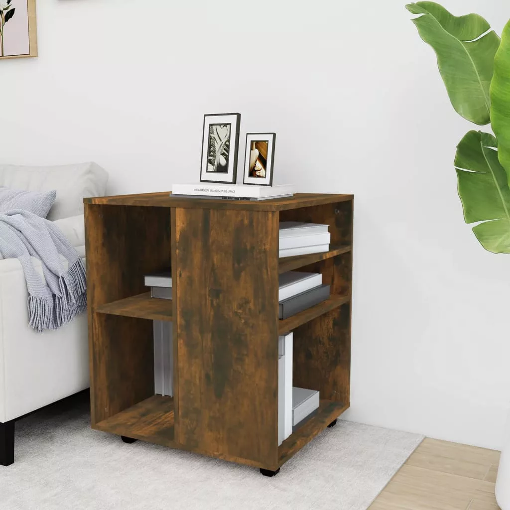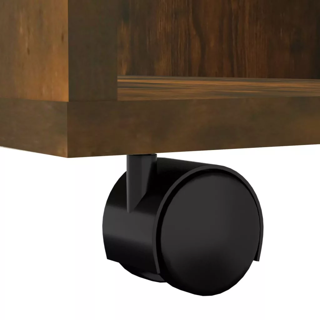 füstös tölgy színű szerelt fa kerekes szekrény 60 x 53 x 72 cm
