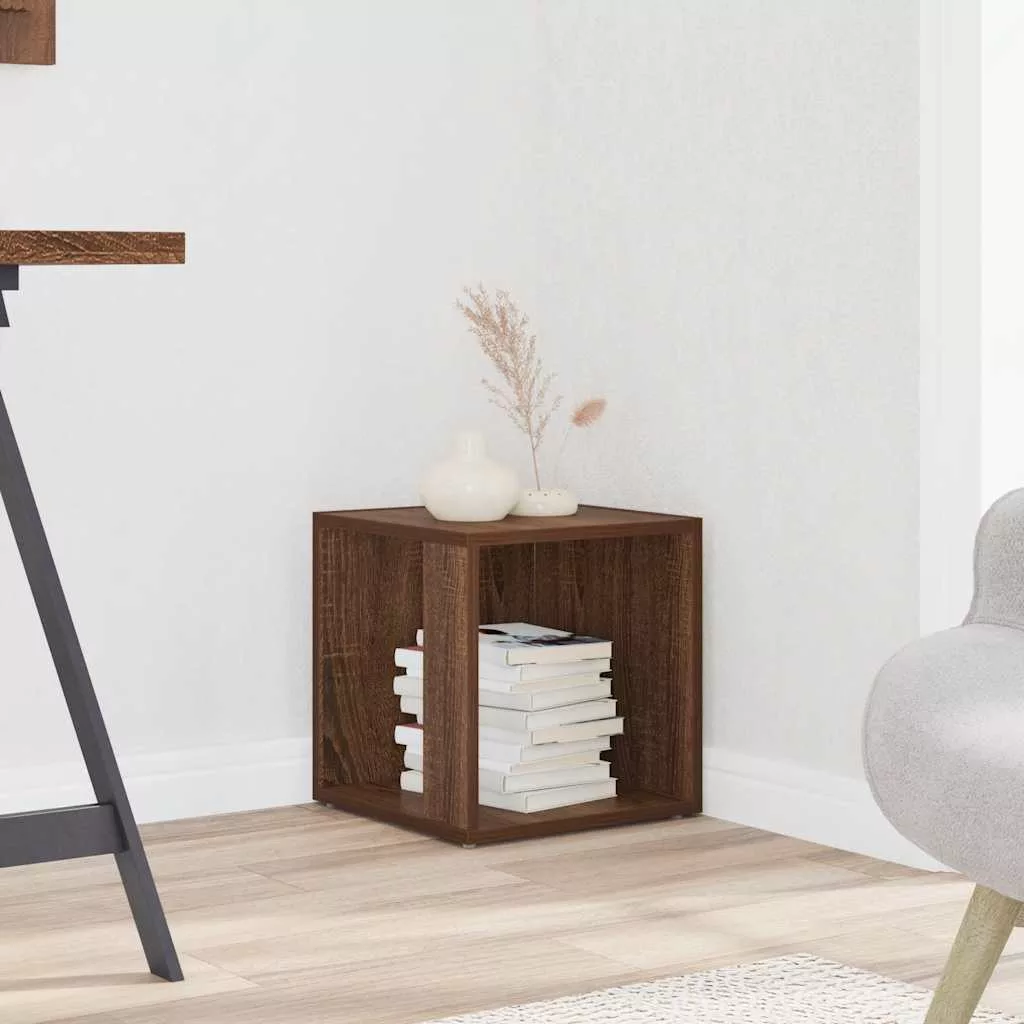barna tölgy színű szerelt fa kisasztal 33 x 33 x 34,5 cm