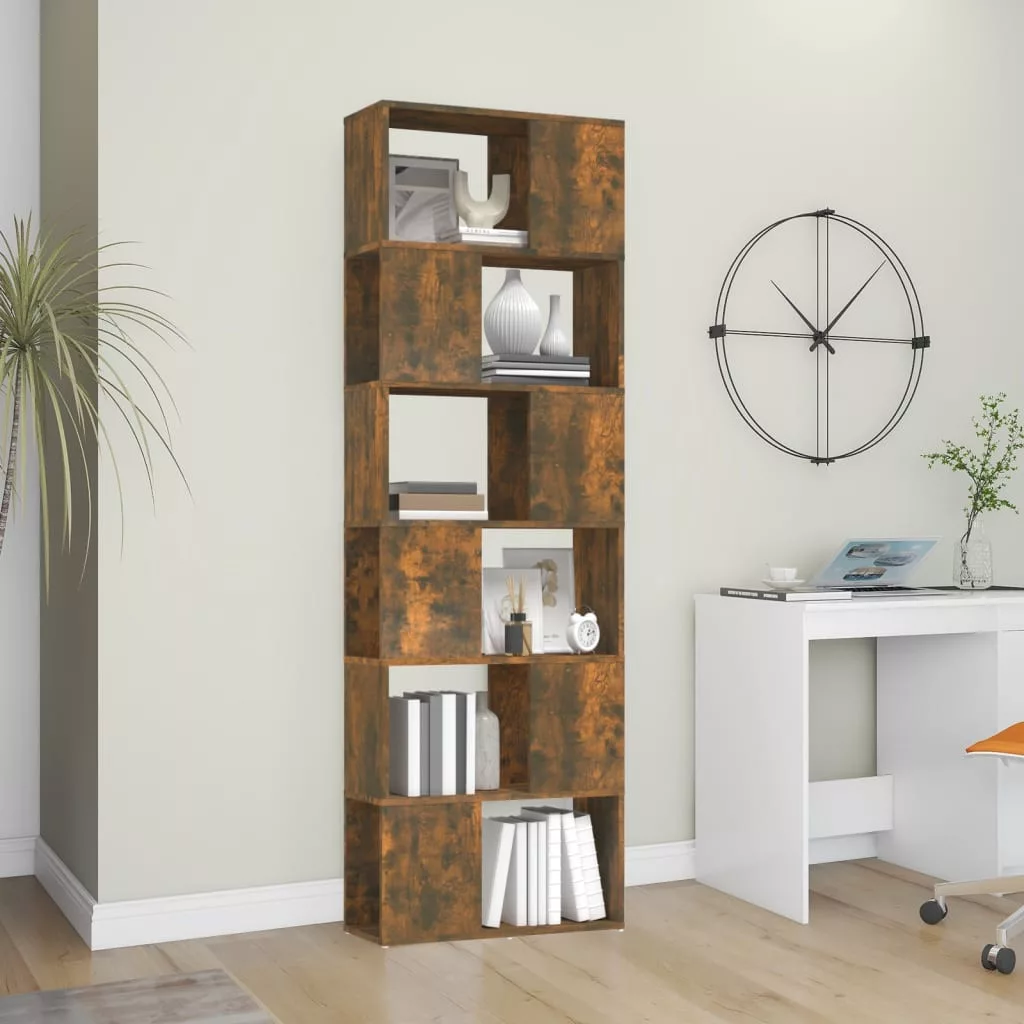 füstös tölgy színű térelválasztó könyvszekrény 60x24x186 cm