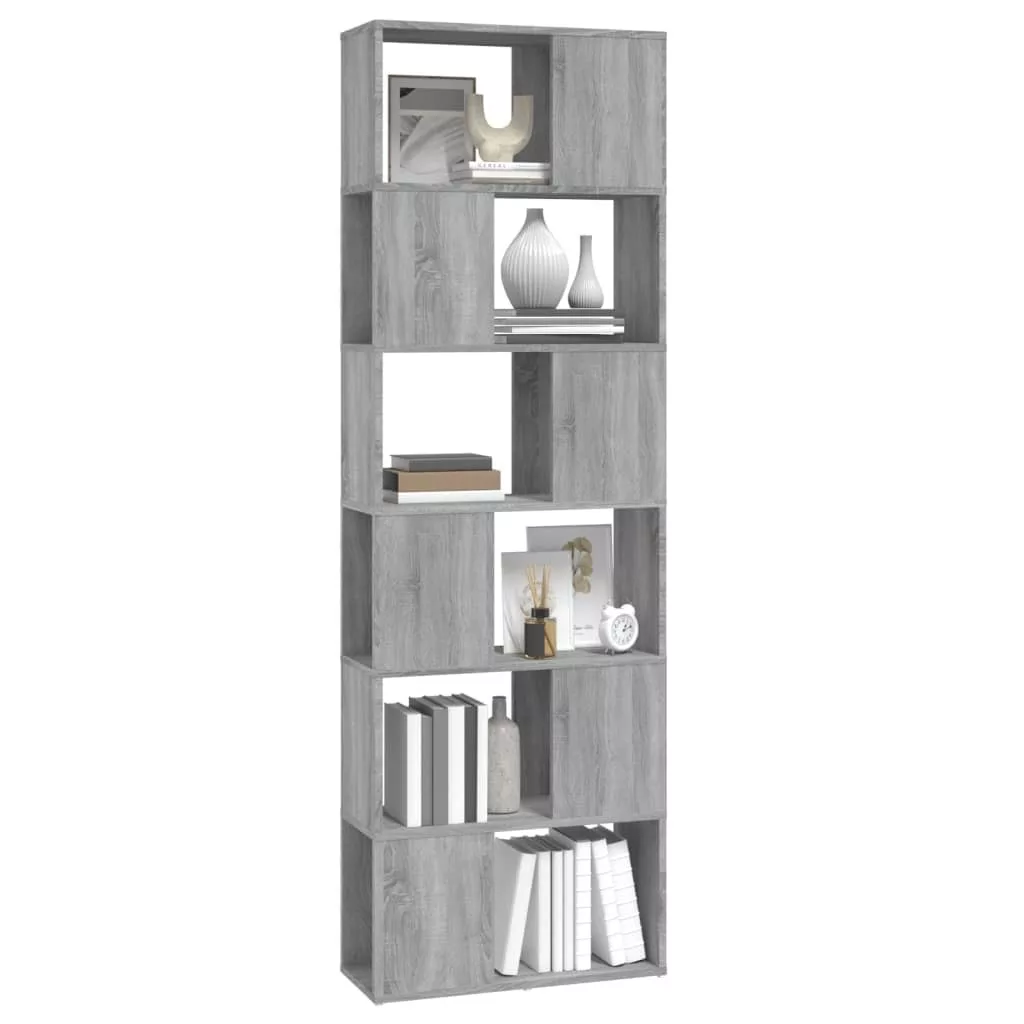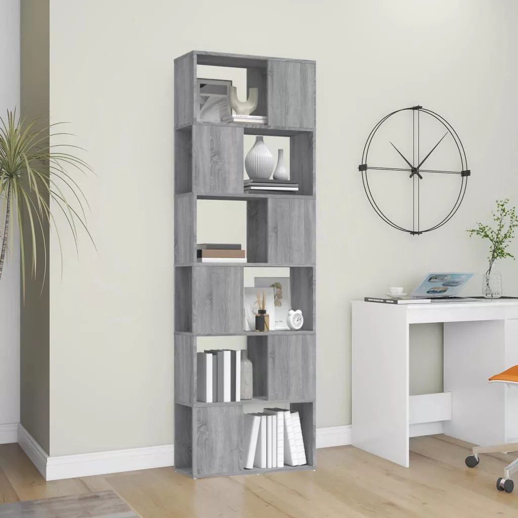 szürke sonoma színű térelválasztó könyvszekrény 60x24x186 cm