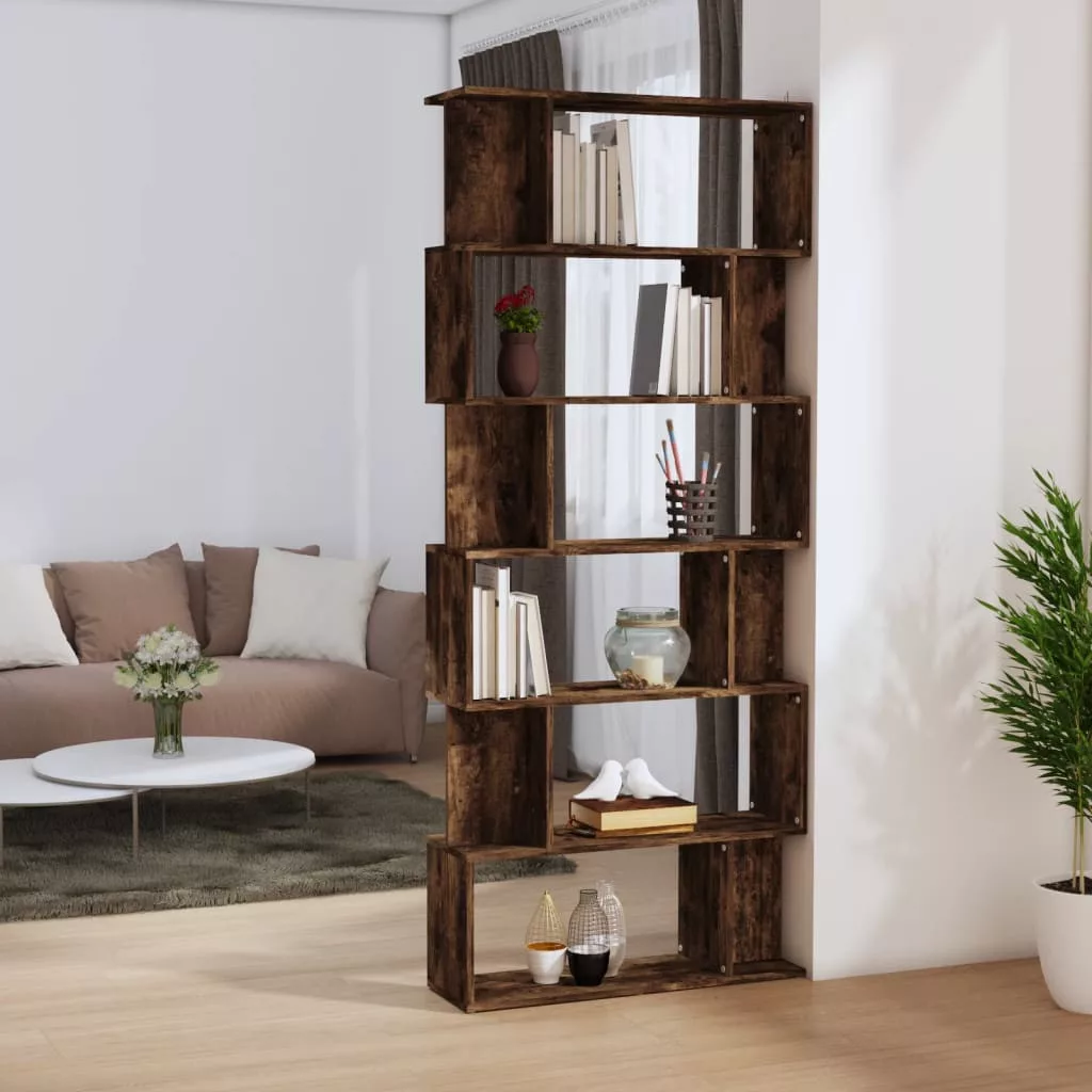 füstös tölgy színű fa könyvszekrény/térelválasztó 80x24x192 cm