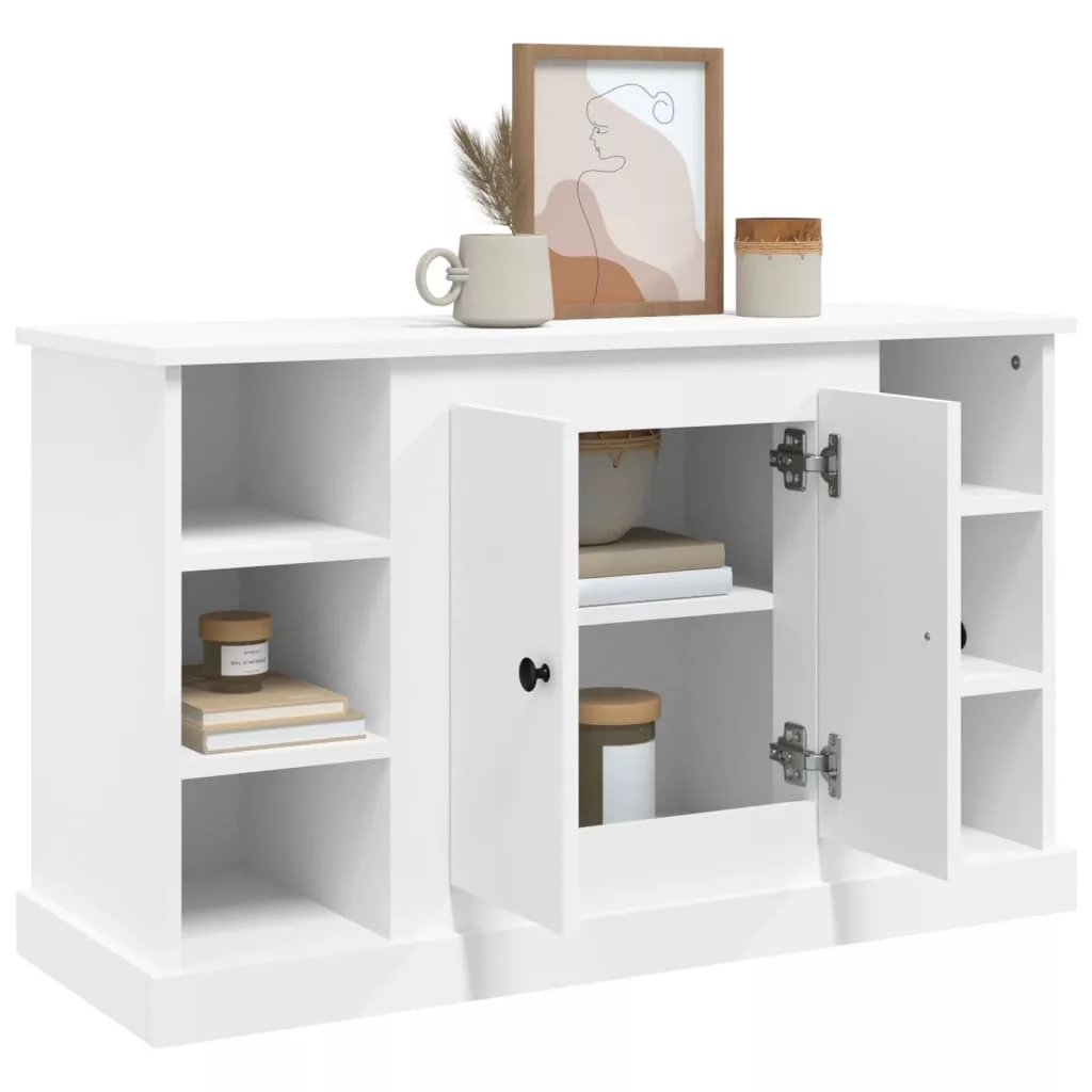 Ez a klasszikus, időtlen megjelenésű tálalószekrény otthona nagyszerű kiegészítője lesz. Tartós anyag: A szerelt fa kivételes minőségű, sima felületű, szilárd, stabil, és ellenáll a nedvességnek.Bőséges tárolóhely: A szekrény bőséges helyet biztosít alapvető holmijai kézközelben történő rendezett tárolásához.Praktikus ajtó: A tálalószekrény ajtókkal lett felszerelve, amelyek megvédik holmijait a portól és a szennyeződésektől. Bemutatófunkció: Kedvenc fotóit, dekorációit vagy virágait is elhelyezheti a tárolószekrény tetején a szoba dekorációjának gazdagítása érdekében. Jó tudni:A szerelés megkönnyítése érdekében minden termék kézikönyvvel együtt kerül kiszállításra. Figyelem:A felborulás elkerülése érdekében ezt a terméket a mellékelt fali rögzítőeszközzel kell használni.