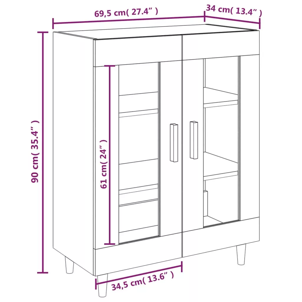 füstös tölgy színű szerelt fa tálalószekrény 69,5 x 34 x 90 cm