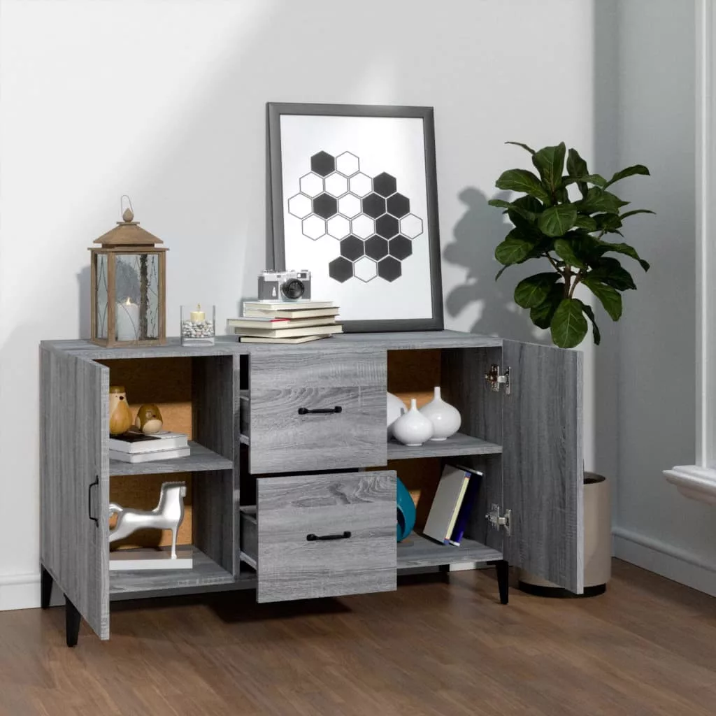 szürke sonoma színű szerelt fa tálalószekrény 100 x 36 x 60 cm