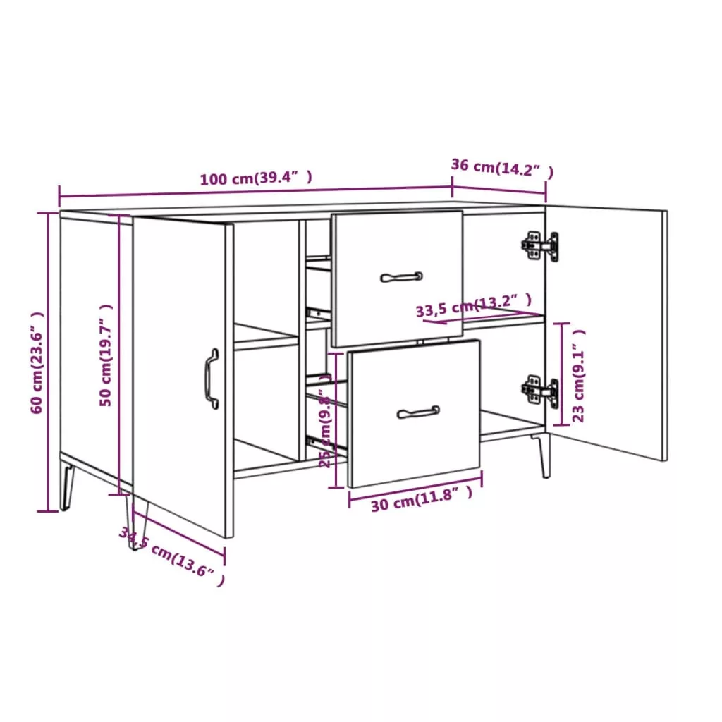 Ez a klasszikus tálalószekrény otthona dekoratív és praktikus kiegészítője lesz. Prémium minőségű anyag: A szerelt fa kivételes minőségű, sima felületű, szilárd, stabil és ellenáll a nedvességnek.Bőséges tárolóhely: A kisszekrény 2 ajtóval és 2 fiókkal rendelkezik, amelyek bőséges tárolóhelyet biztosítanak alapvető kellékei kézközelben történő rendezett tárolásához. A szekrény felső lapja kiválóan alkalmas dísztárgyai elhelyezésére.Könnyű tisztítás: Ez a tárolószekrény nedves ruhával könnyen tisztítható.Elegáns kialakítás: Ez az elegáns kialakítású büfészekrény egy csipetnyi egyedi bájt csempész otthonába! Figyelem:A dőlés megakadályozása érdekében a terméket a mellékelt tartóelem segítségével rögzíteni kell a falhoz.