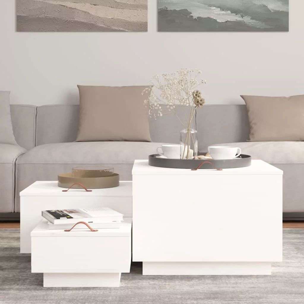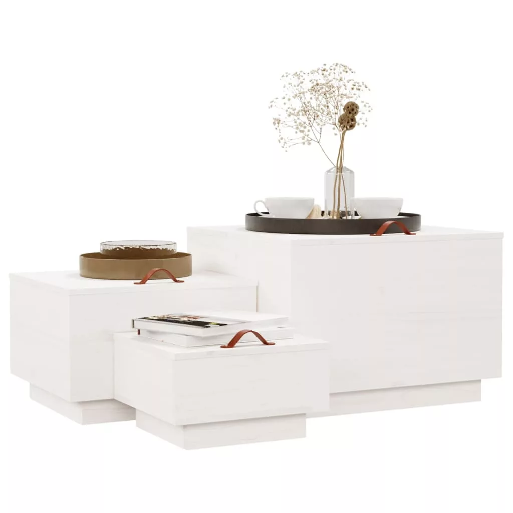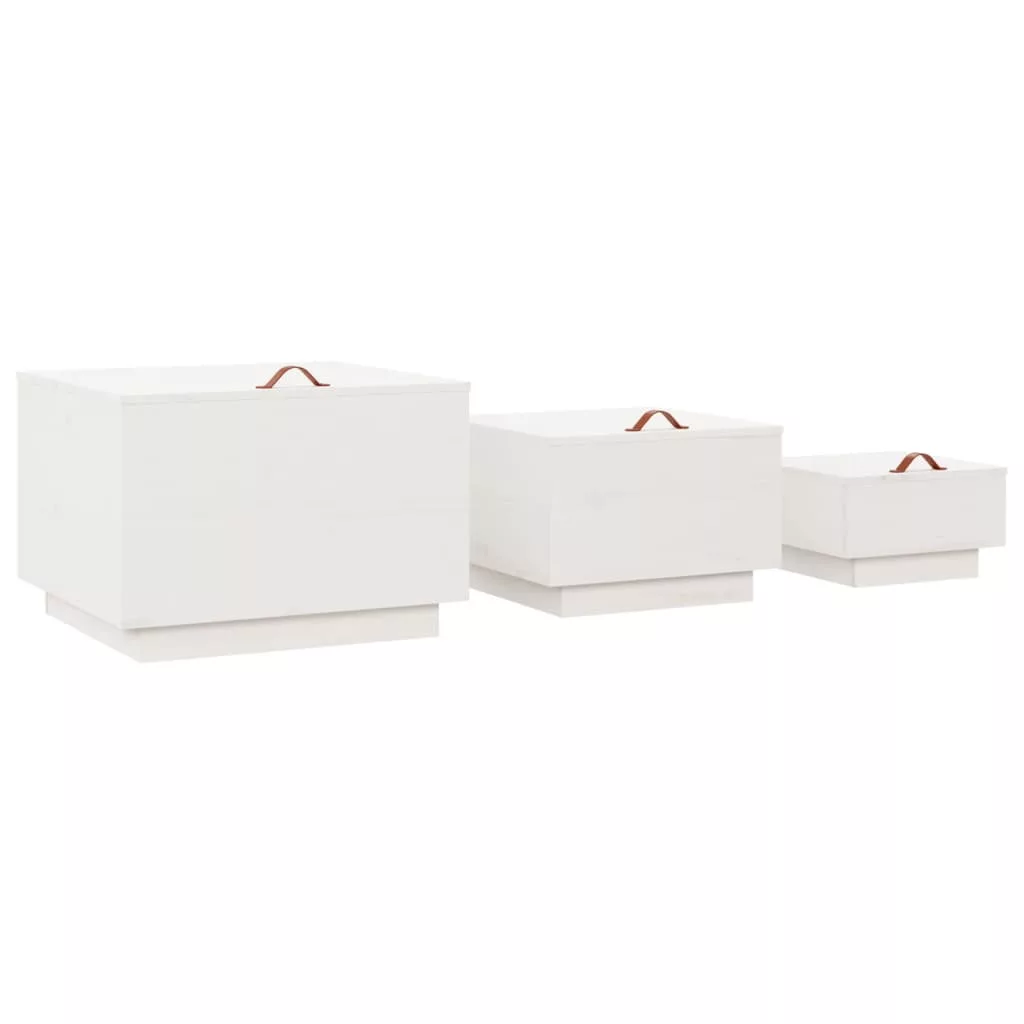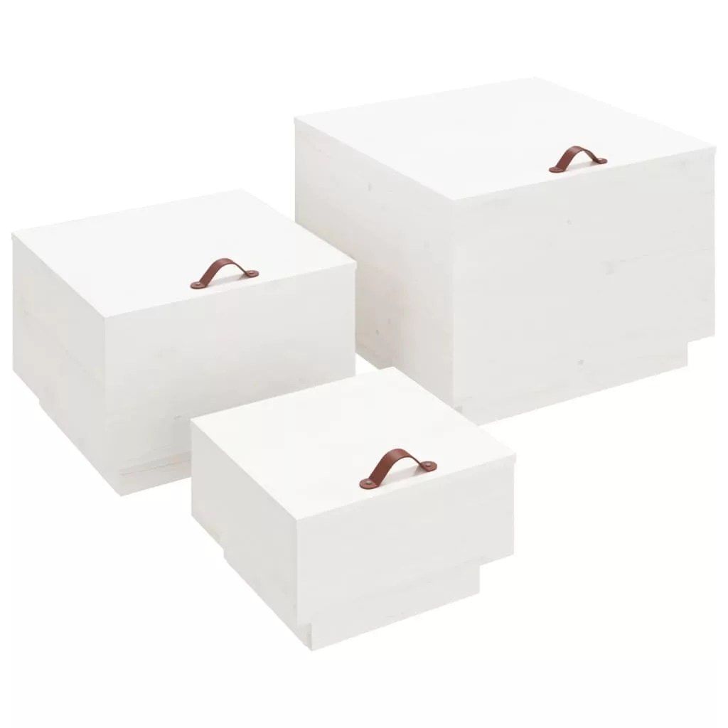 3 db fehér tömör fenyőfa tárolódoboz fedéllel