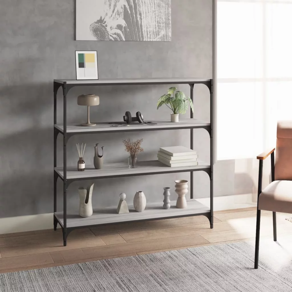 szürke sonoma színű szerelt fa/acél könyvszekrény 100x33x100 cm