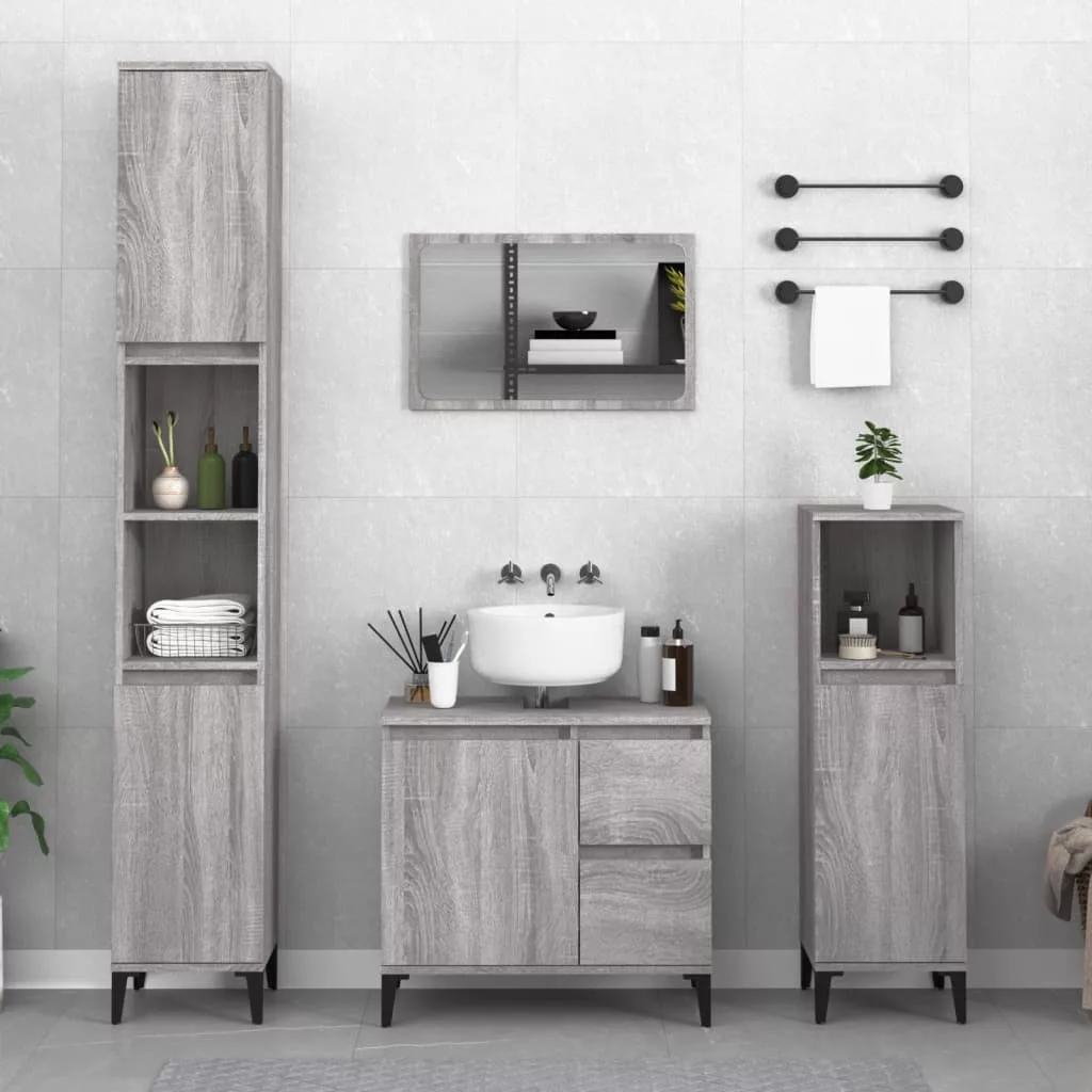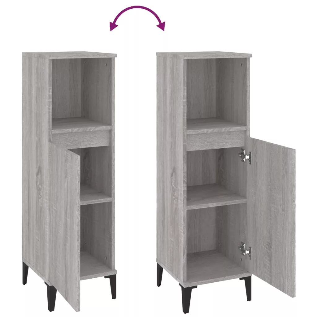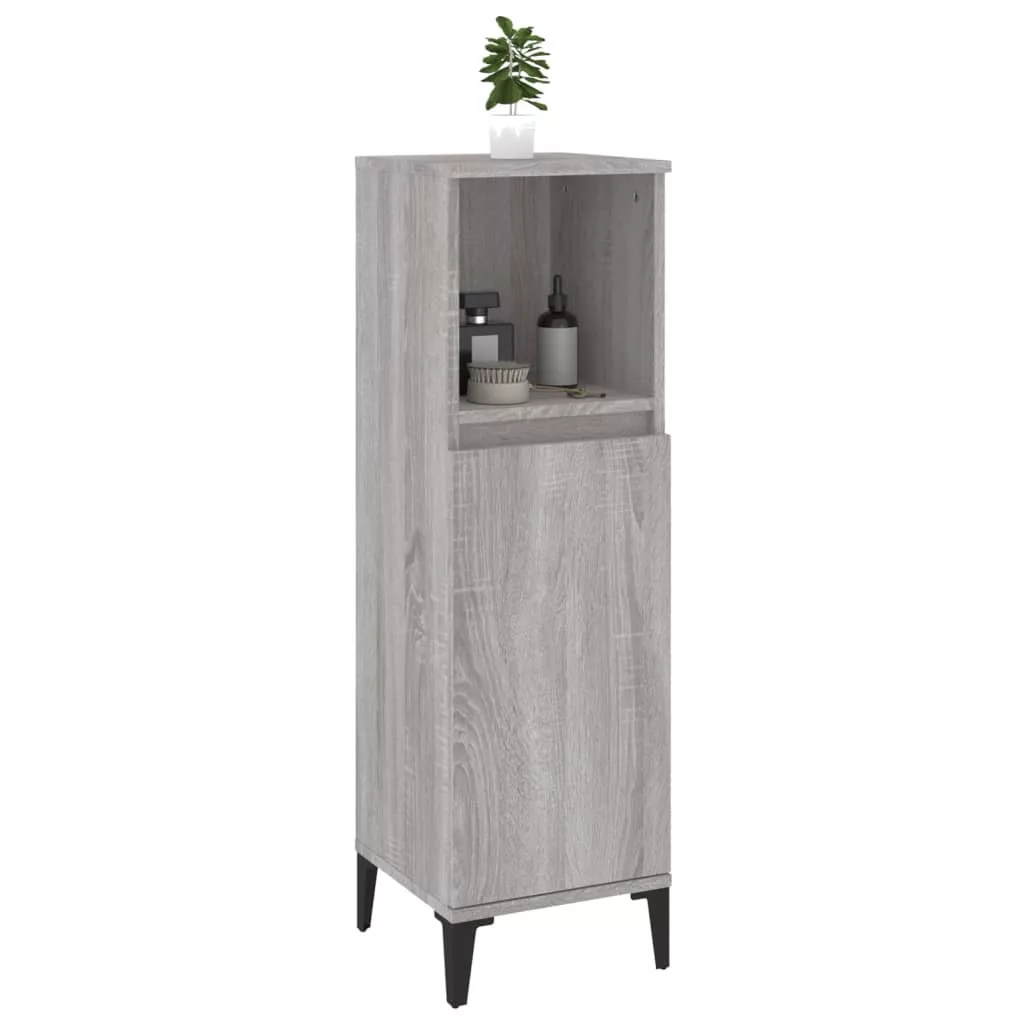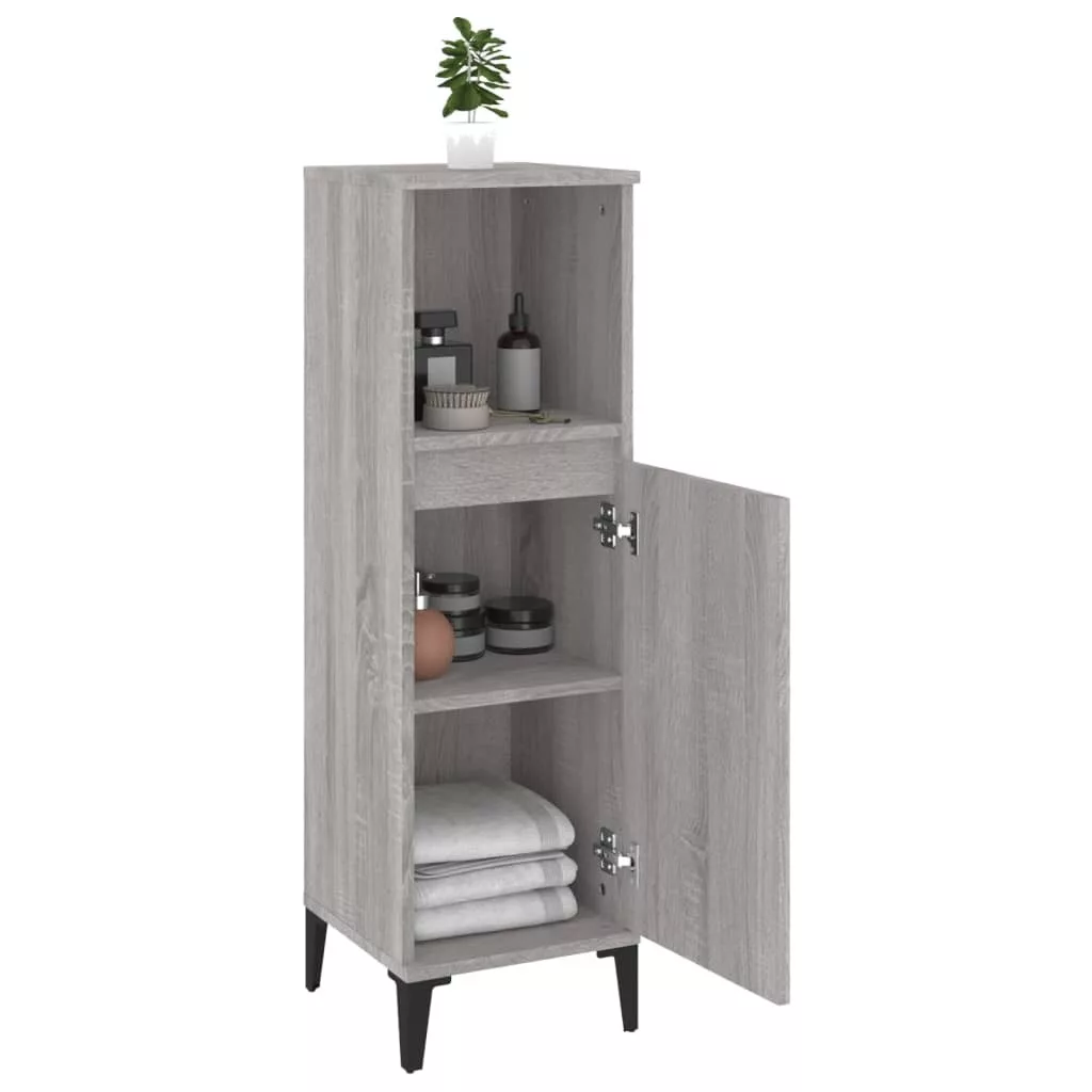 szürke sonoma színű szerelt fa fürdőszobaszekrény 30x30x100 cm