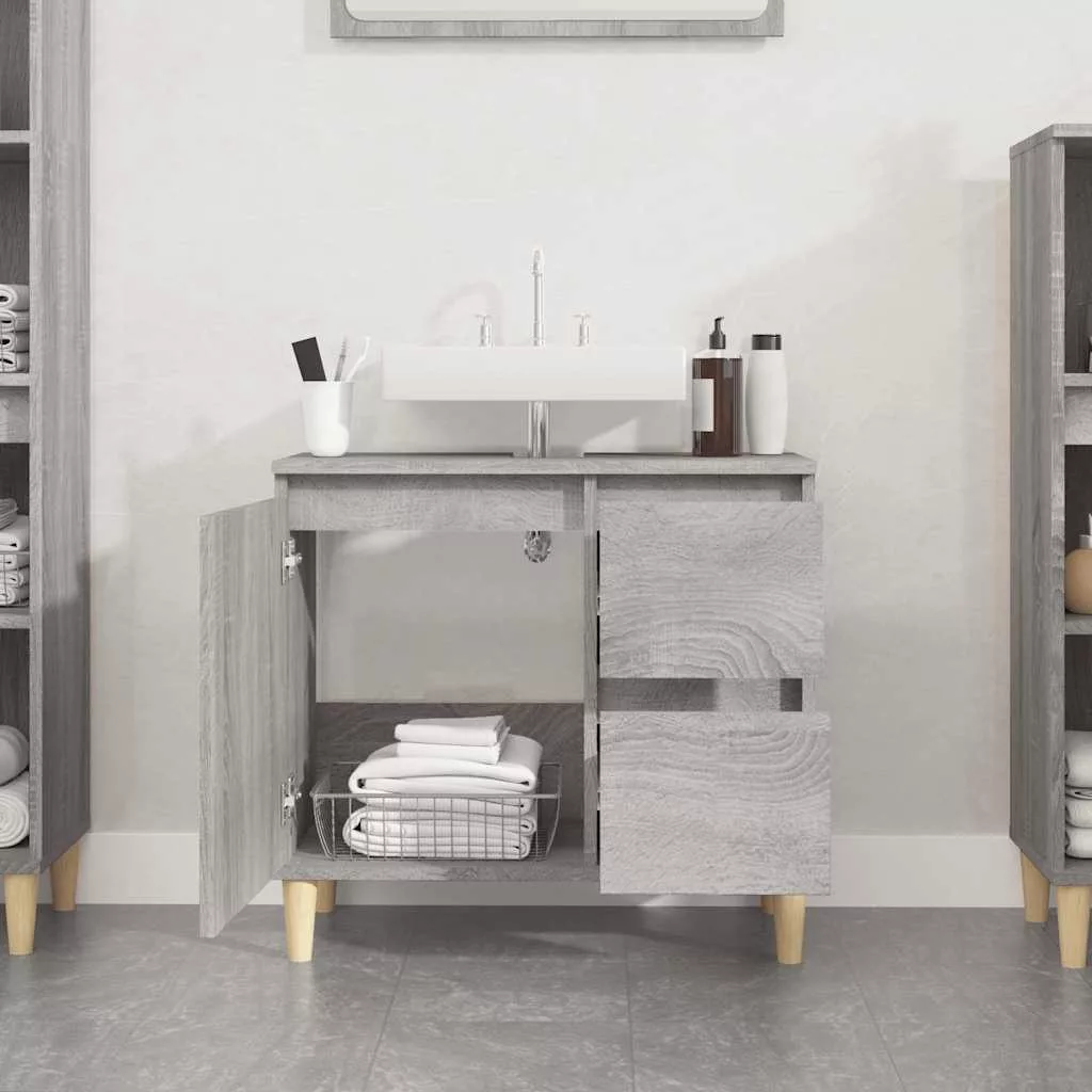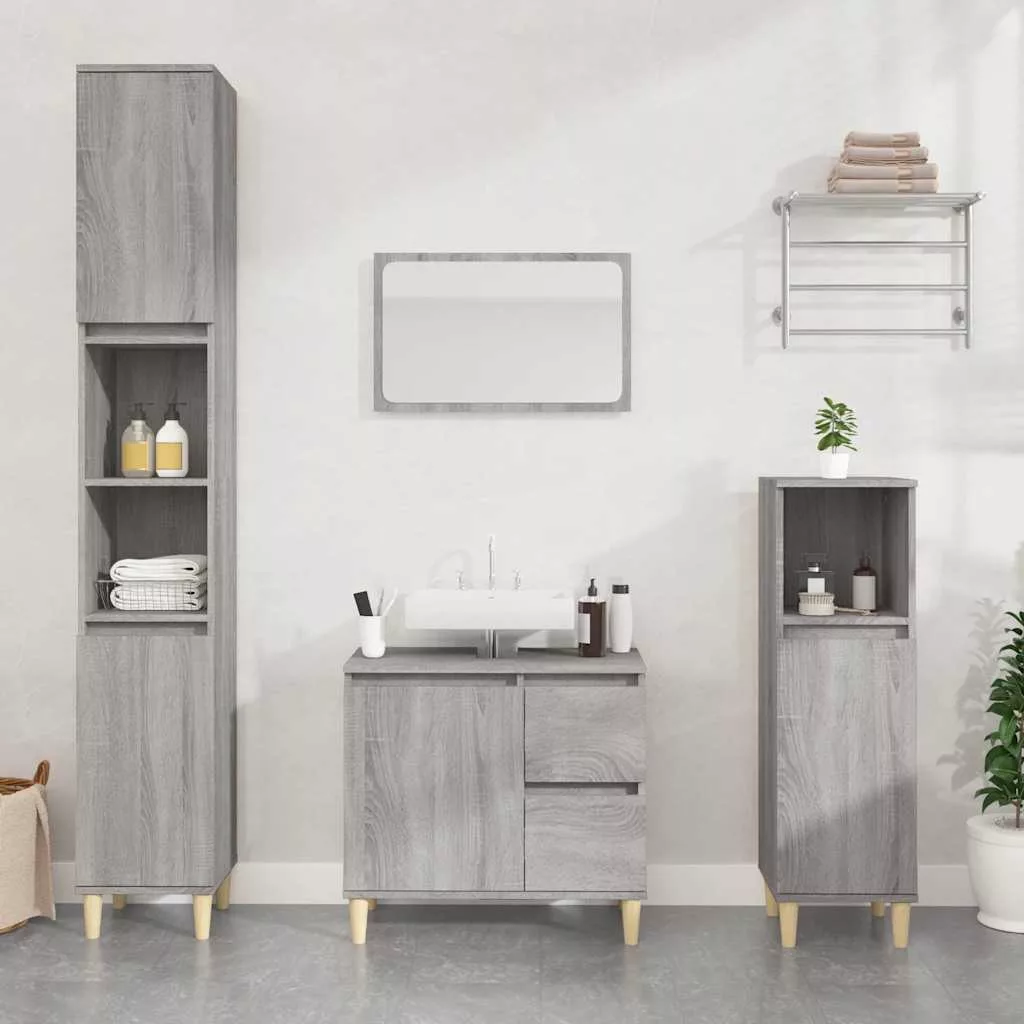 szürke sonoma színű szerelt fa fürdőszobaszekrény 65x33x60 cm