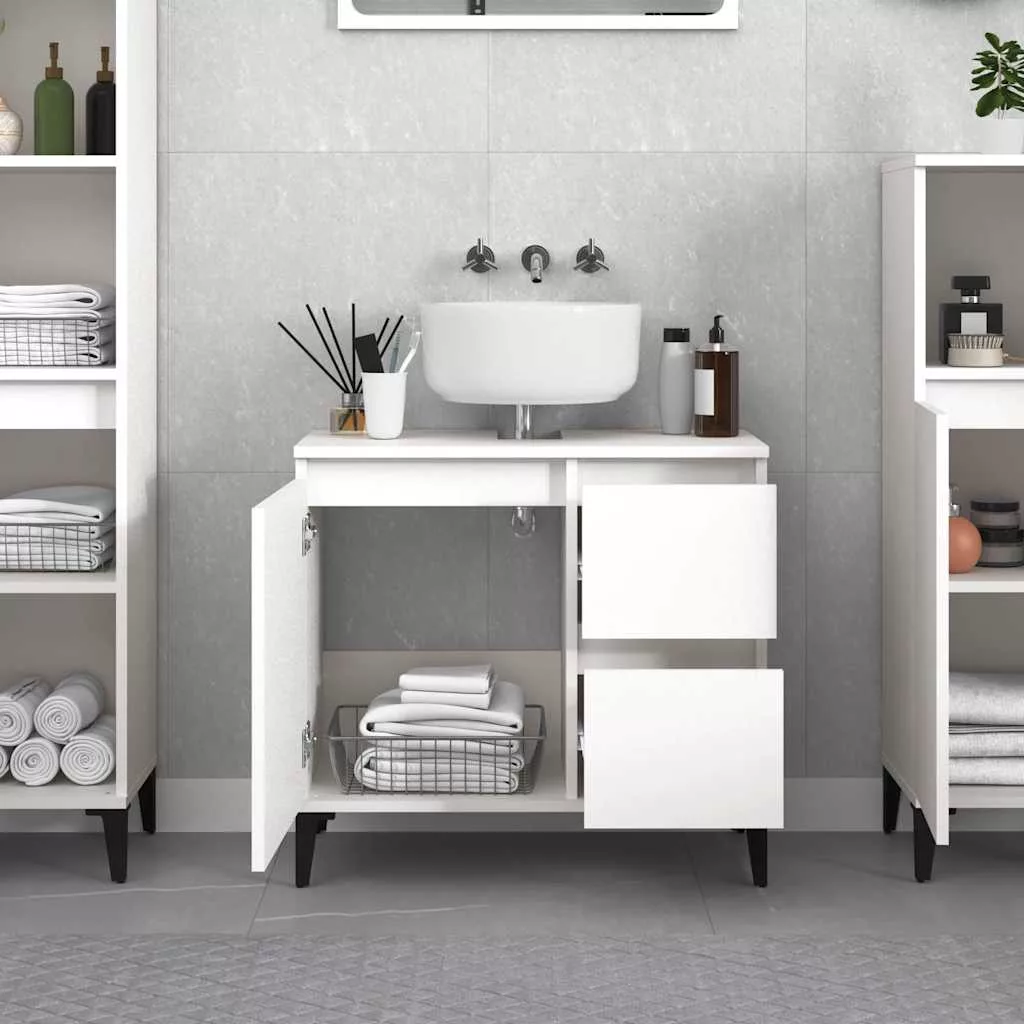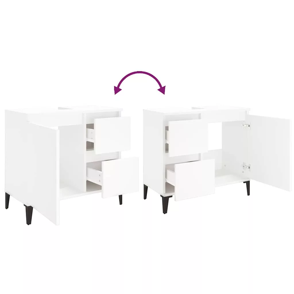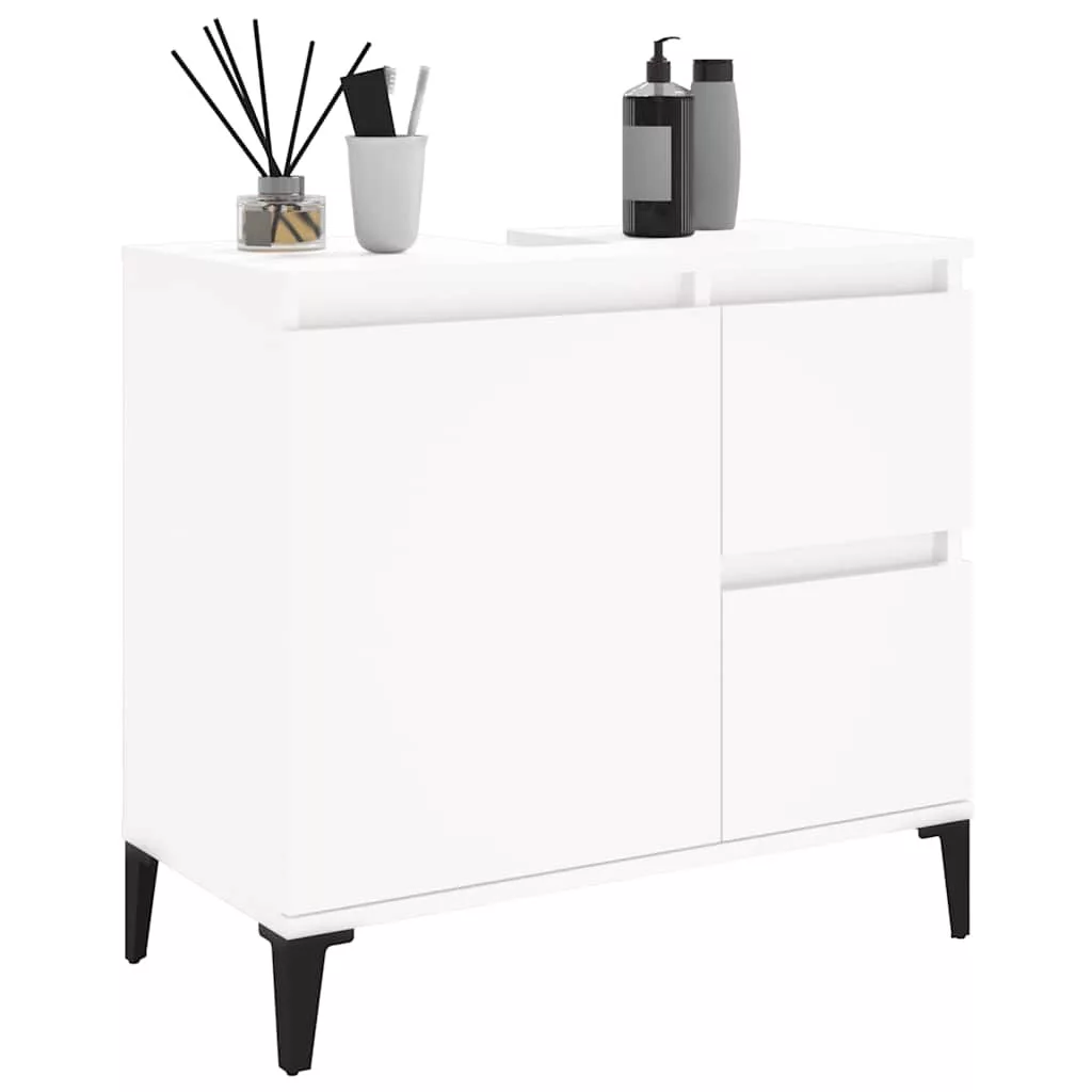 Ez a fürdőszobaszekrény nagyszerű választás fürdőszobája rendezetté varázsolásához! Tartós anyag: A szerelt fa kivételes minőségű, sima felületű, szilárd, stabil, és ellenáll a nedvességnek.Bőséges tárolóhely: A fürdőszobabútor 2 fiókkal és 1 rekesszel rendelkezik, amelyek különféle tárolási lehetőségeket és extra helyet kínálnak holmija tárolására a fürdőszobában.Fémlábak: A fémlábak szilárdságot és stabilitást biztosítanak a mosdószekrénynek.Rugalmas kialakítás: Az ajtókat és a fiókokat saját igényei szerint bal vagy jobb oldalra is beépítheti. Figyelem:A felborulás elkerülése érdekében ezt a terméket a mellékelt fali rögzítőeszközzel kell használni.