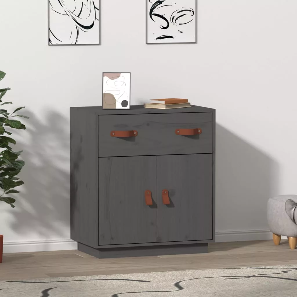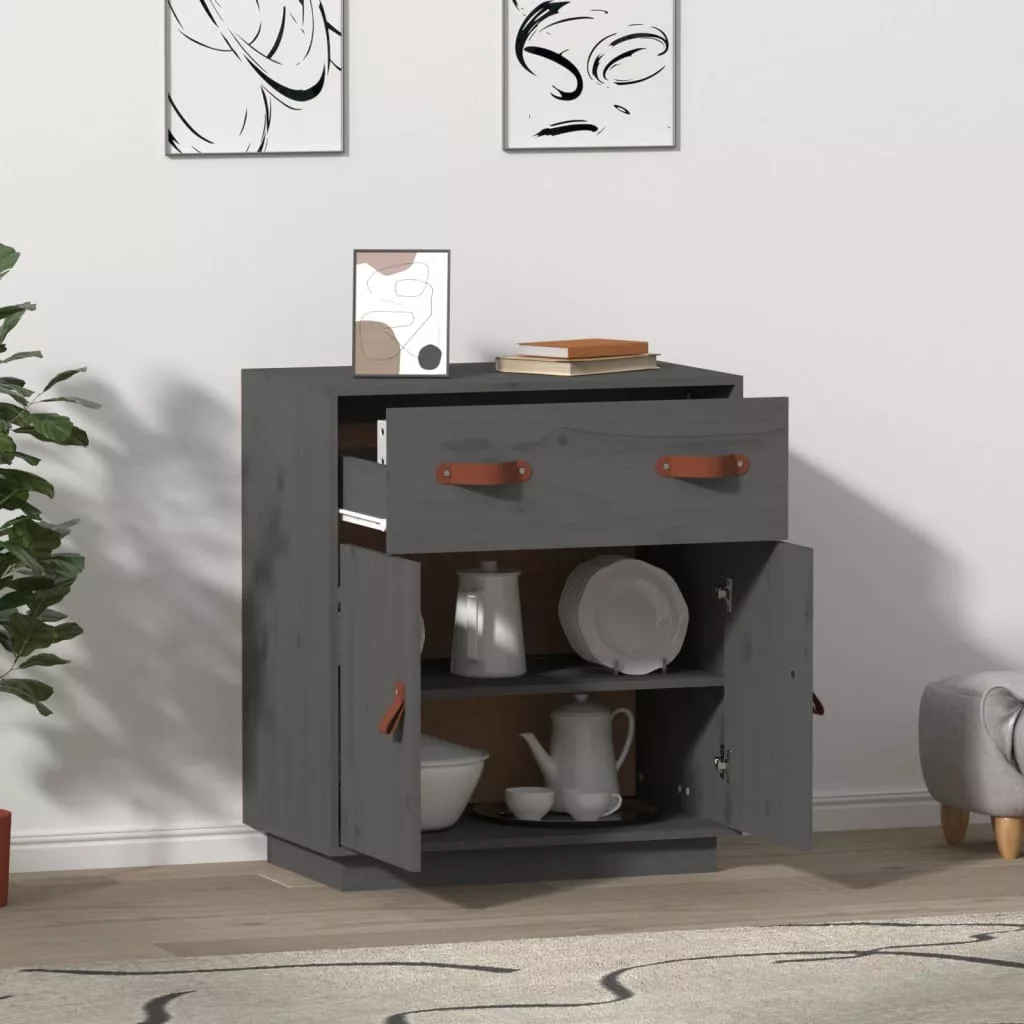 szürke tömör fenyőfa tálalószekrény 65,5 x 40 x 75 cm