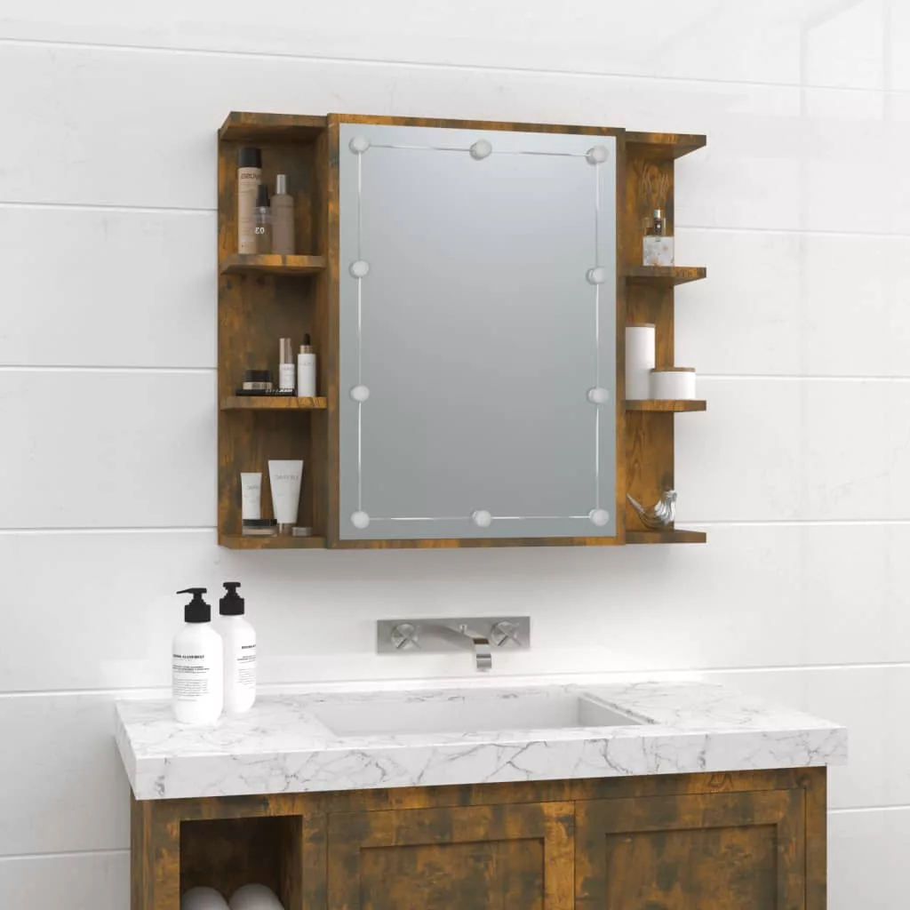 füstös tölgy színű tükrös szekrény LED-ekkel 70 x 16,5 x 60 cm