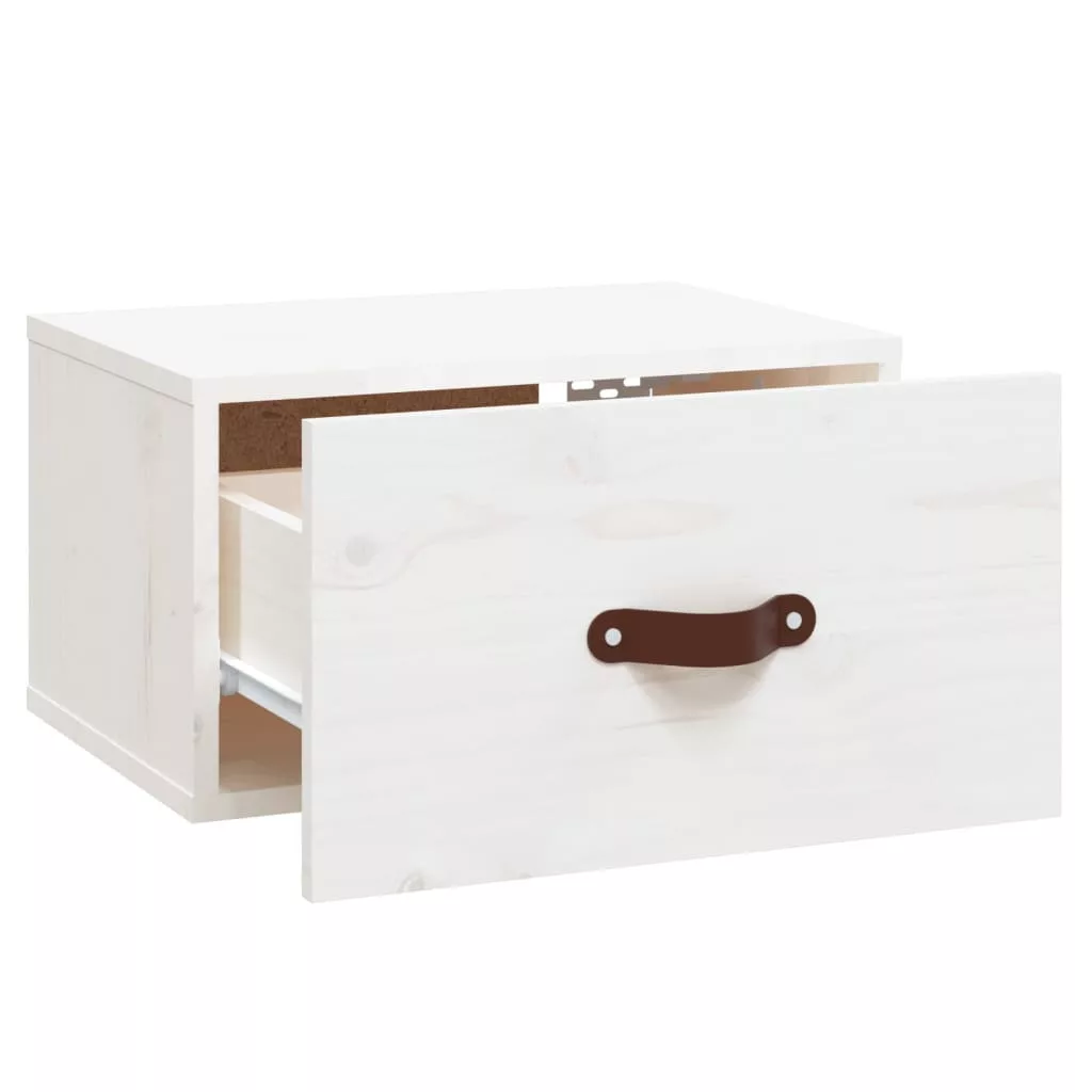 Ezek az elegáns és divatos falra szerelhető éjjeliszekrények otthona időtálló kiegészítői lesznek. Tömör fenyőfa: A tömör fenyőfa egy gyönyörű természetes anyag. A fenyőfa erezete egyenes, a csomók adják az anyag jellegzetes, rusztikus megjelenését.Bőséges tárolóhely: A falra szerelhető éjjeliszekrény praktikus helyet biztosít magazinjai, távirányítói és egyéb apró tárgyai kézközelben történő rendezett tárolásához.Falra szerelhető: A fali éjjeliszekrény nem foglal helyet a padlón. Könnyen felszerelheti a falra.Stabil felső lap: A fali éjjeliszekrény stabil lapjára asztali lámpát, könyveket és egyebeket helyezhet. Megjegyzés:A falon belüli csavar(ok) és dugó(k) nem alaptartozékok. Keressen és használjon a falának megfelelő csavar(oka)t és dugó(ka)t. Ha bizonytalan, kérje szakember tanácsát. Gondosan olvassa el és kövesse a használati utasítás minden lépését.Az egyszerű összeszerelés érdekében minden termékhez mellékelünk összeszerelési útmutatót.