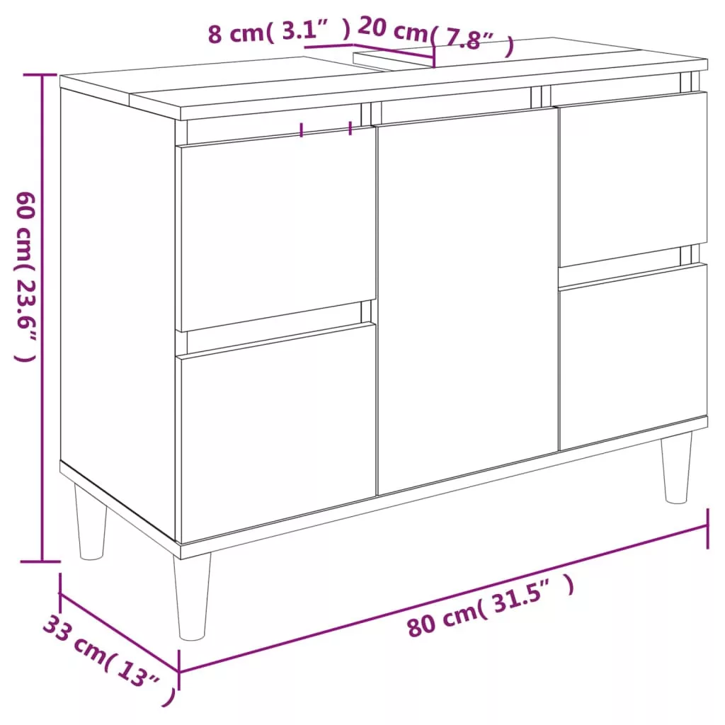 füstös tölgy színű szerelt fa mosdószekrény 80 x 33 x 60 cm