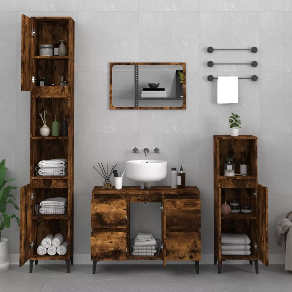 füstös tölgy színű szerelt fa mosdószekrény 80 x 33 x 60 cm