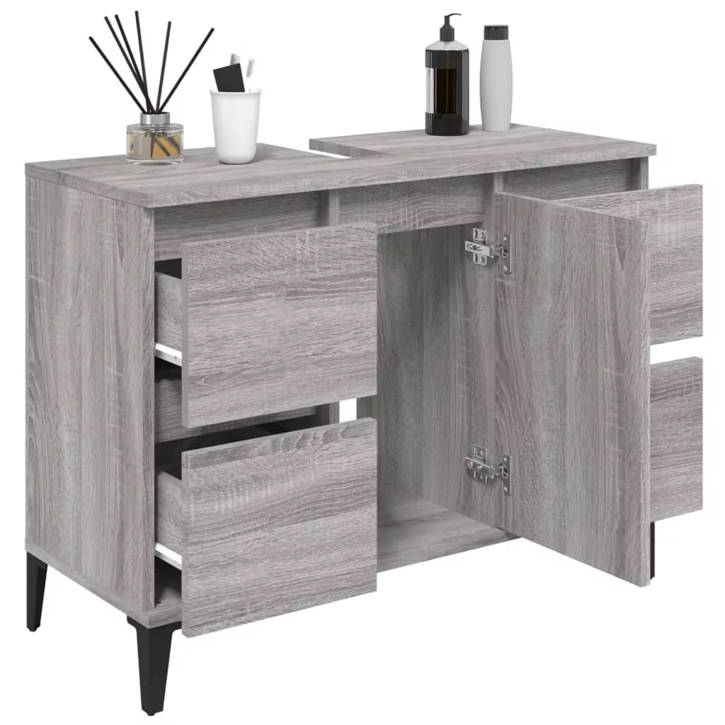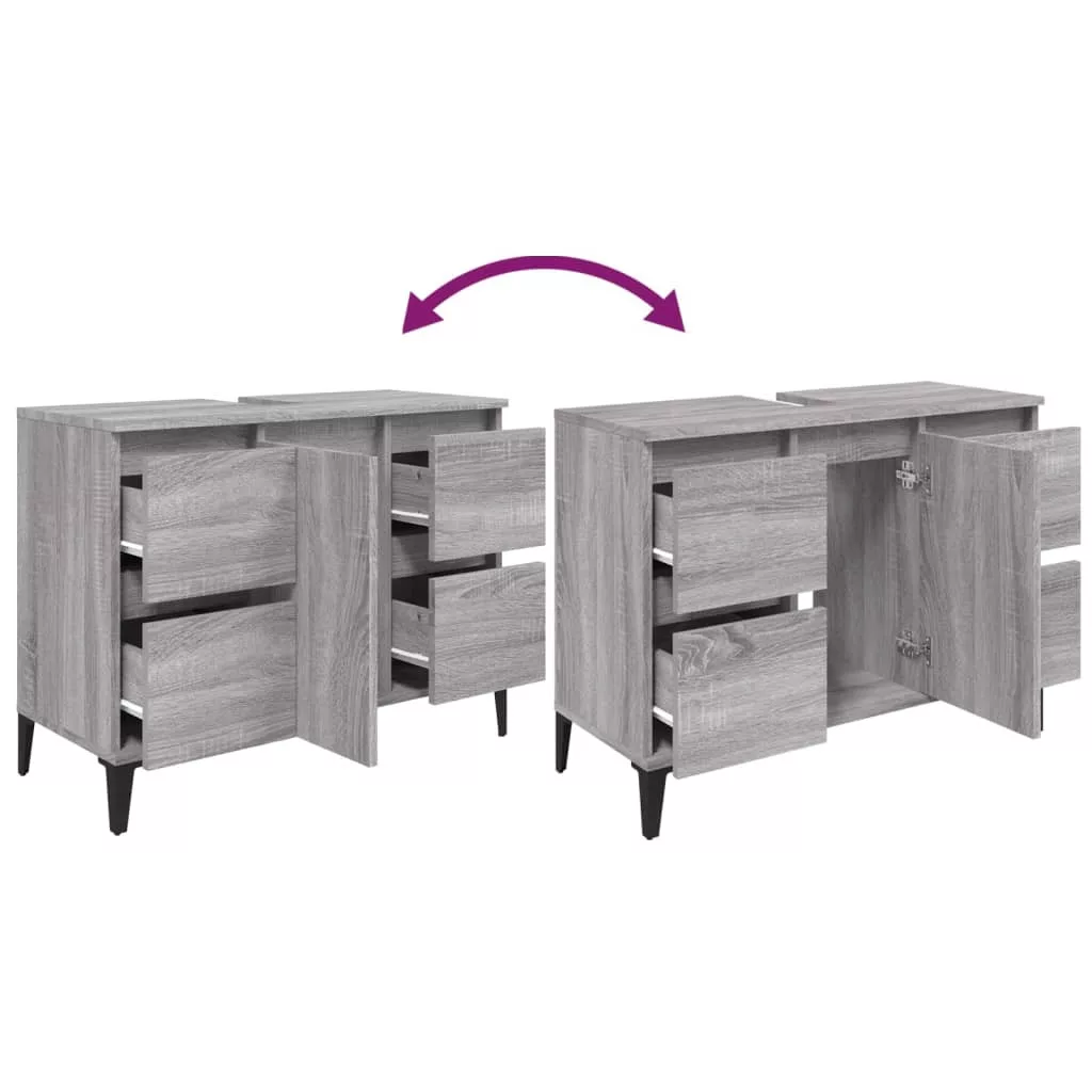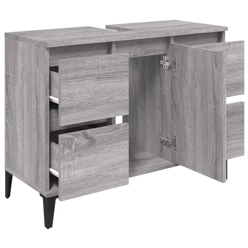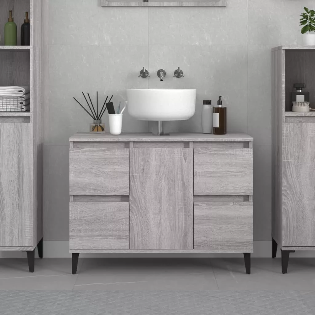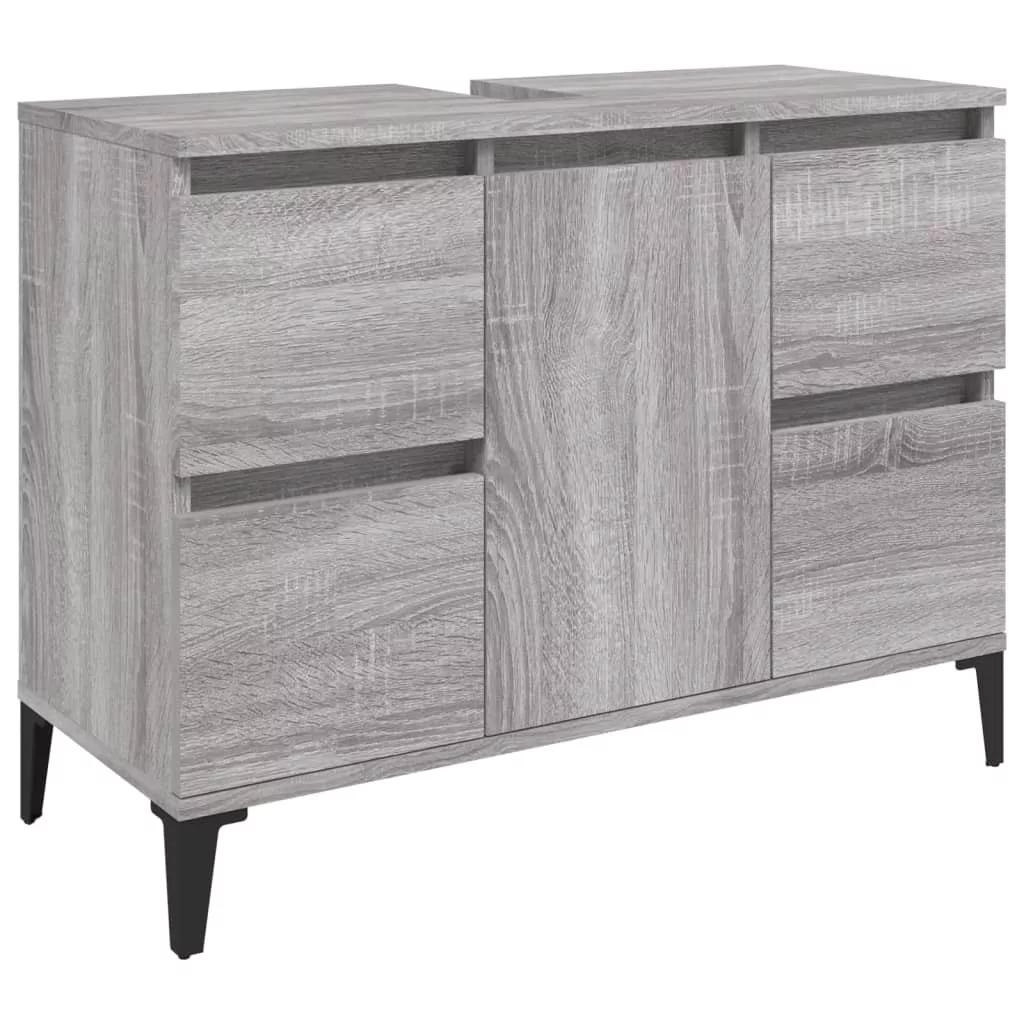 szürke sonoma színű szerelt fa mosdószekrény 80 x 33 x 60 cm