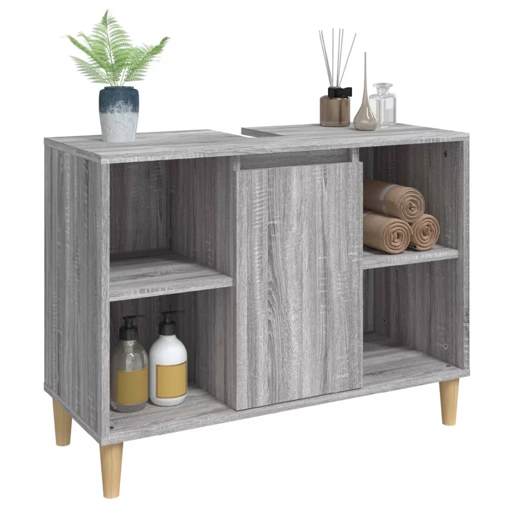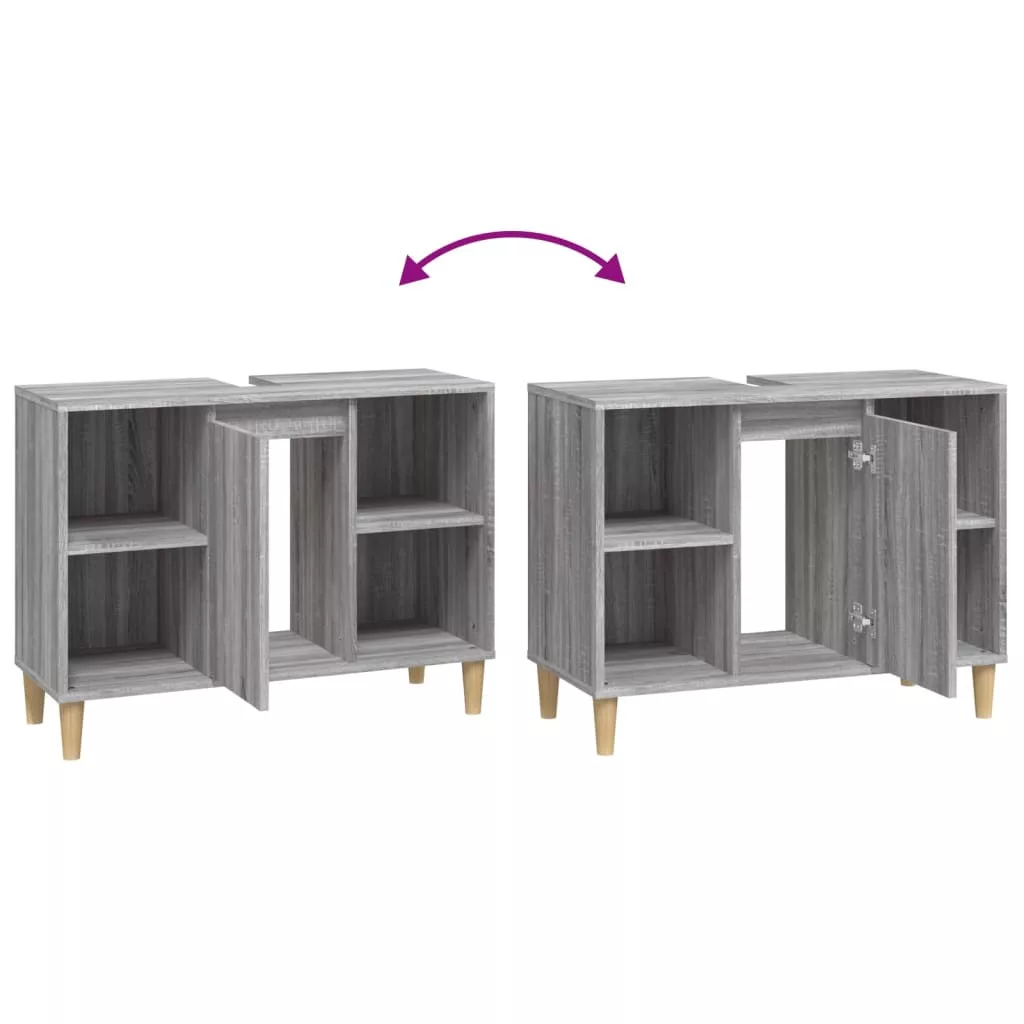 szürke sonoma színű szerelt fa mosdószekrény 80 x 33 x 60 cm