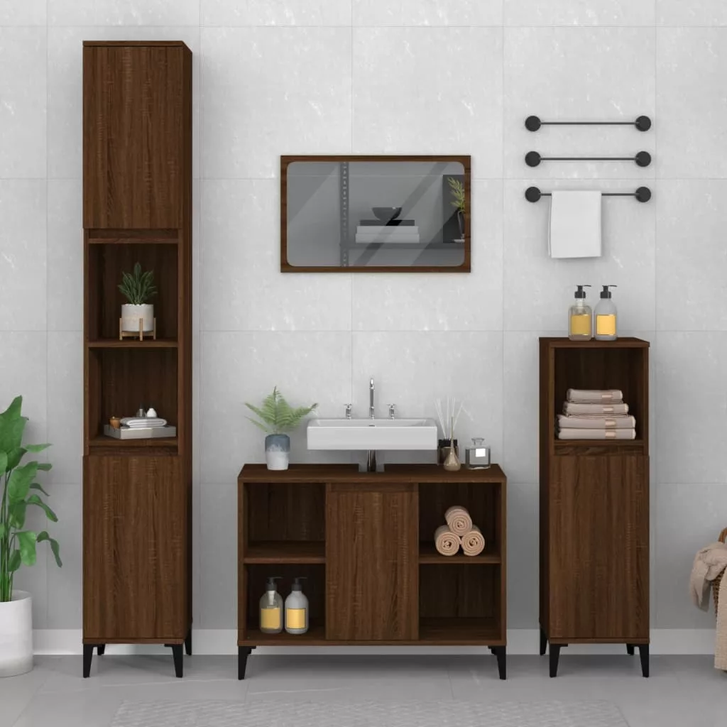 barna tölgyszínű szerelt fa mosdószekrény 80 x 33 x 60 cm