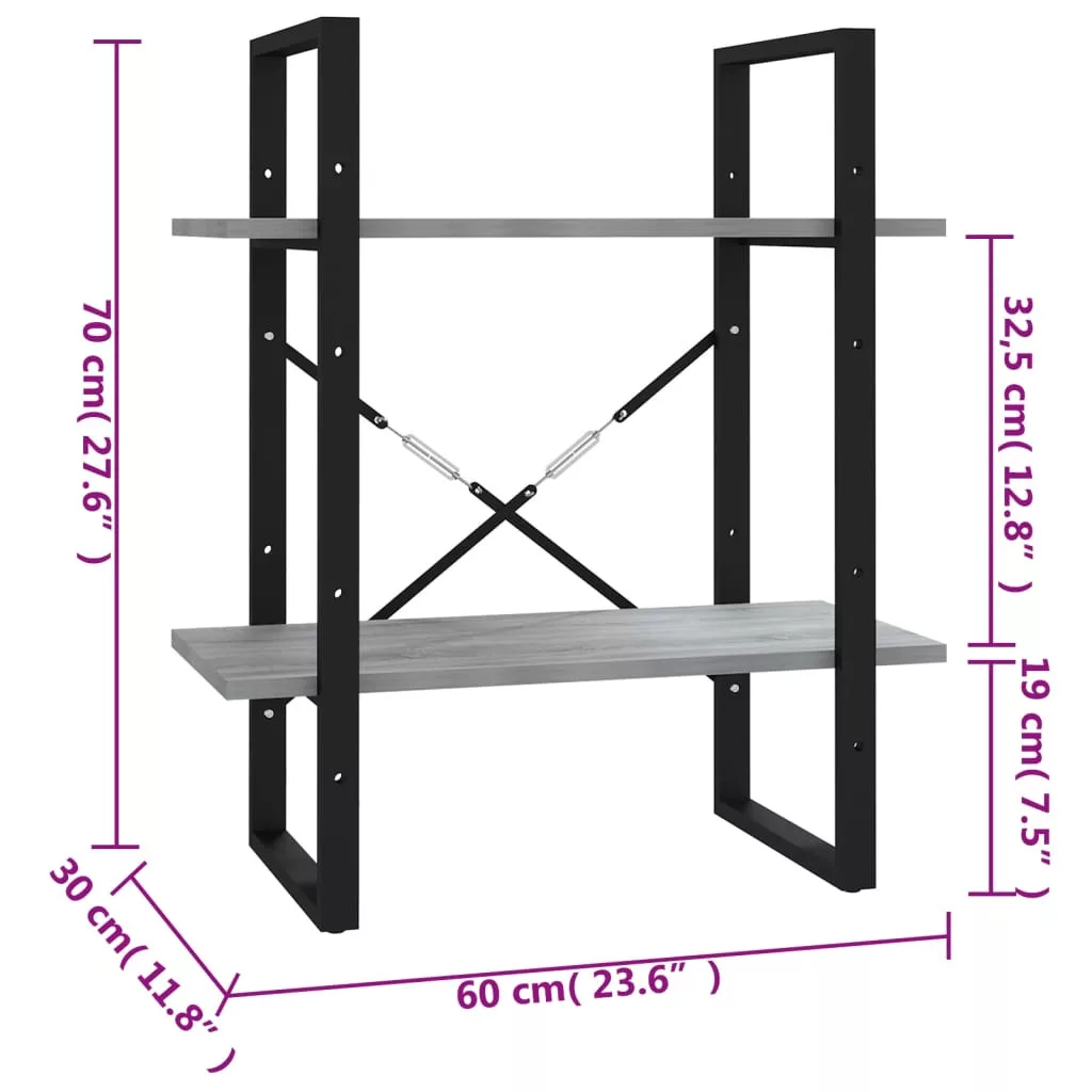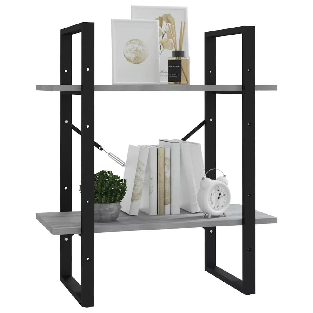 2-szintes szürke sonoma szerelt fa könyvszekrény 60x30x70 cm